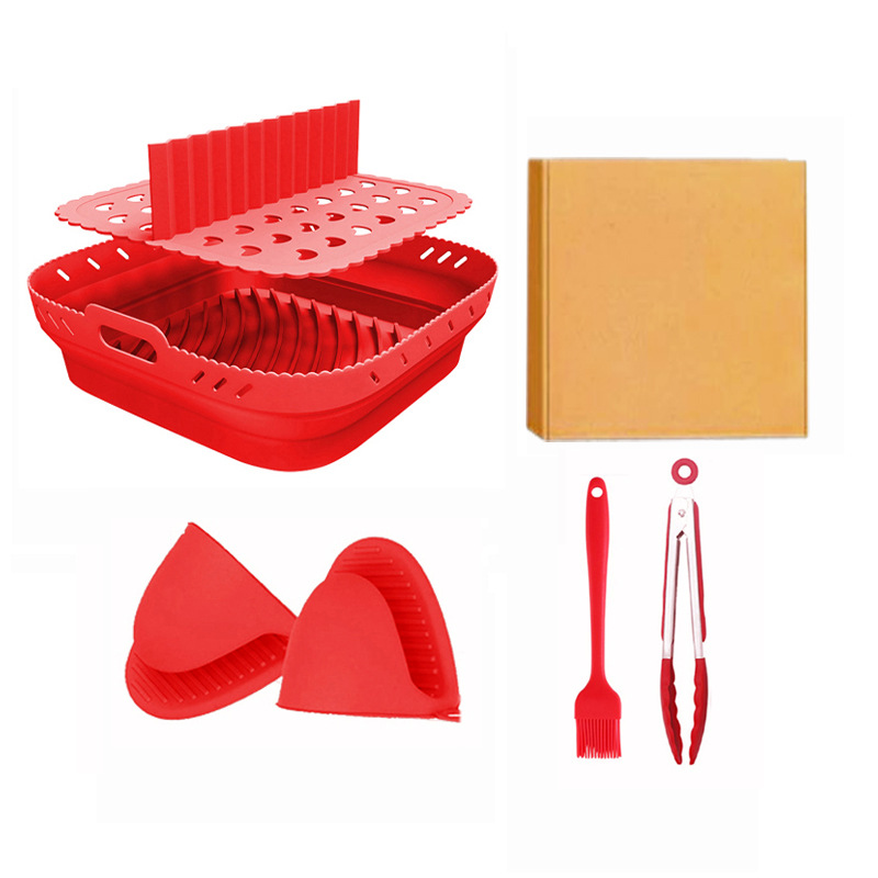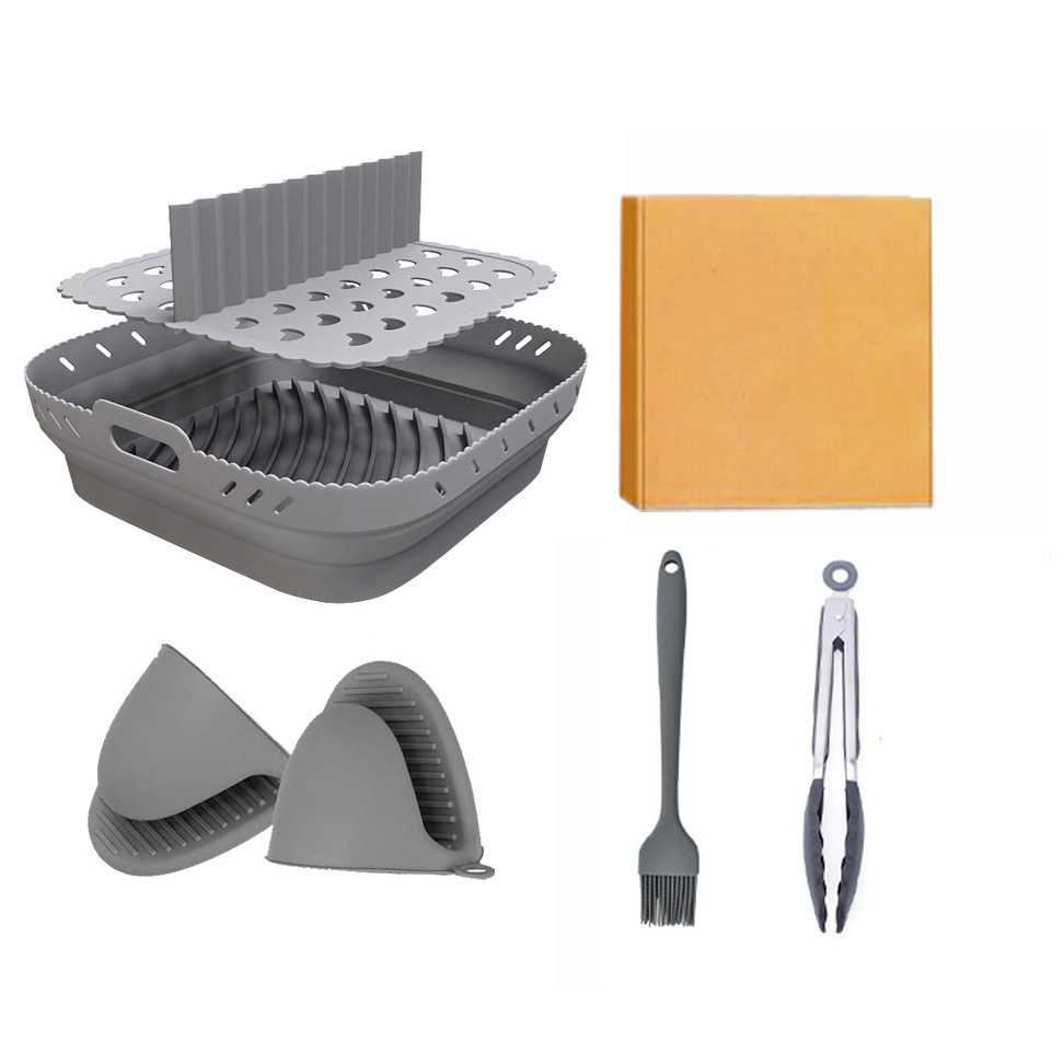 【产品净重】:烤盘185g, 分隔垫85g, 两个手夹86g, 油刷43g, 食物夹66g, 拉链袋12g, 牛皮纸盒80g.