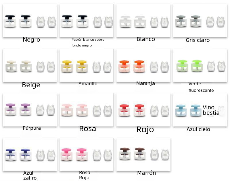 | Color | Negro [1 par de cordones + 2 hebillas de zapatos + 4 clips de cola],Blanco [1 par de cordones + 2 hebillas de zapatos + 4 clips de cola],Gris claro [1 par de cordones + 2 hebillas de zapatos + 4 clips de cola],Beige [1 par de cordones + 2 hebillas de zapatos + 4 clips de cola],Azul zafiro [1 par de cordones + 2 hebillas de zapato + 4 clips de cola],Azul cielo [1 par de cordones + 2 hebillas de zapatos + 4 clips de cola],Naranja [1 par de cordones + 2 hebillas de zapatos + 4 clips de cola],Rosa [1 par de cordones + 2 hebillas de zapatos + 4 clips de cola],Púrpura 2 [1 par de cordones + 2 hebillas de zapatos + 4 clips de cola],Amarillo [1 par de cordones + 2 hebillas de zapato + 4 clips de cola],Rojo [1 par de cordones + 2 hebillas de zapatos + 4 clips de cola],Rose Red [1 par de cordones + 2 hebillas de zapatos + 4 clips de cola],Verde fluorescente [1 par de cordones + 2 hebillas de zapatos + 4 clips de cola],Marrón [1 par de cordones + 2 hebillas de zapatos + 4 clips de cola],Accesorios clip de cola,Colección Color,Accesorios Bell |