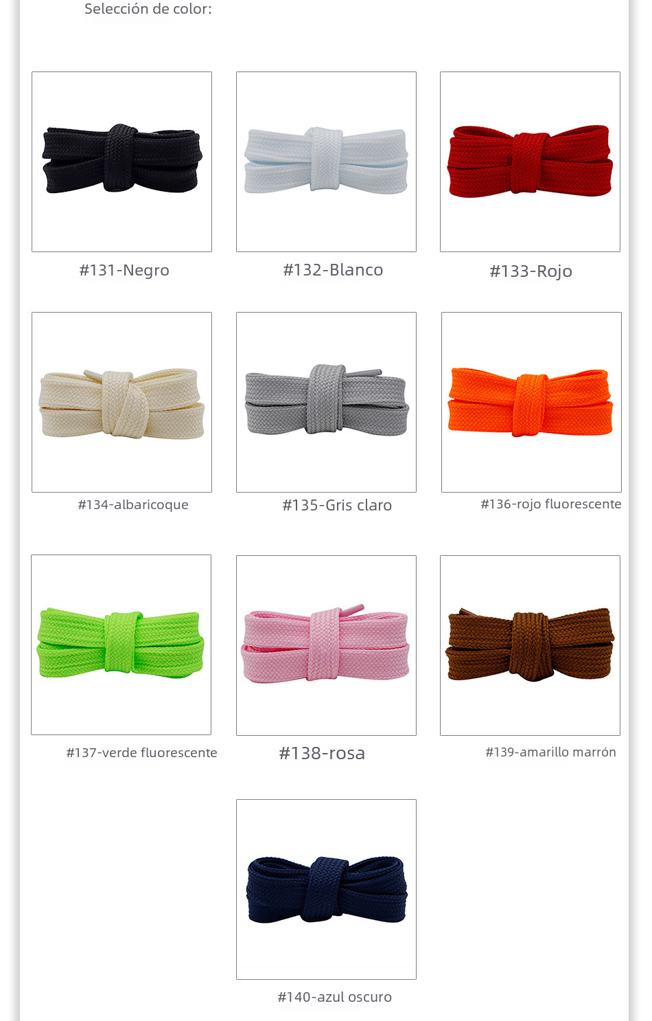 | Color | #131 negro,#132 Blanco,#5001 Blanco + cabeza de metal,#133 Rojo,#134 albaricoque,#135 gris claro,#136 rojo fluorescente,#137 verde fluorescente,#138 rosa,#139 amarillo marrón,#140 azul oscuro |