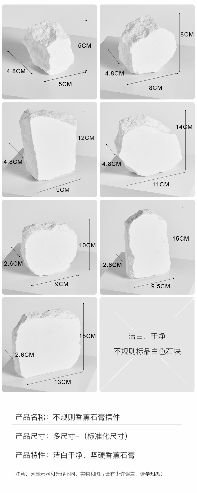 | color | Tamaño pequeño de 1,6 cm de grosor.,Tamaño mediano de 1,6 cm de grosor.,Tamaño grande de 1,6 cm de espesor.,Combinación de 3 piezas de 1,6 cm de grosor.,Tamaño pequeño de 2,6 cm de grosor.,Tamaño mediano de 2,6 cm de grosor.,Tamaño grande de 2,6 cm de grosor.,Combinación de 3 piezas de 2,6 cm de grosor.,Tamaño pequeño de 4,8 cm de grosor.,Tamaño mediano de 4,8 cm de grosor.,4,8 cm de espesor tamaño grande A,4,8 cm de espesor talla grande B,Combinación de 4 piezas de 4,8 cm de grosor.,Juego completo de 10 piezas.,Imagen principal A, 3 piezas como se muestra,Imagen principal estilo B 3 piezas como se muestra,Imagen principal estilo C 3 piezas como se muestra,Imagen principal estilo D 4 piezas como se muestra,[Nuevo estilo] Color Morandi 4 piezas como se muestra en la imagen.,Juego de 3 piezas de travertino de yeso irregular como se muestra en la imagen,TREN de yeso irregular,Escaval de yeso irregular mediano,Espeleolito de yeso irregular grande |