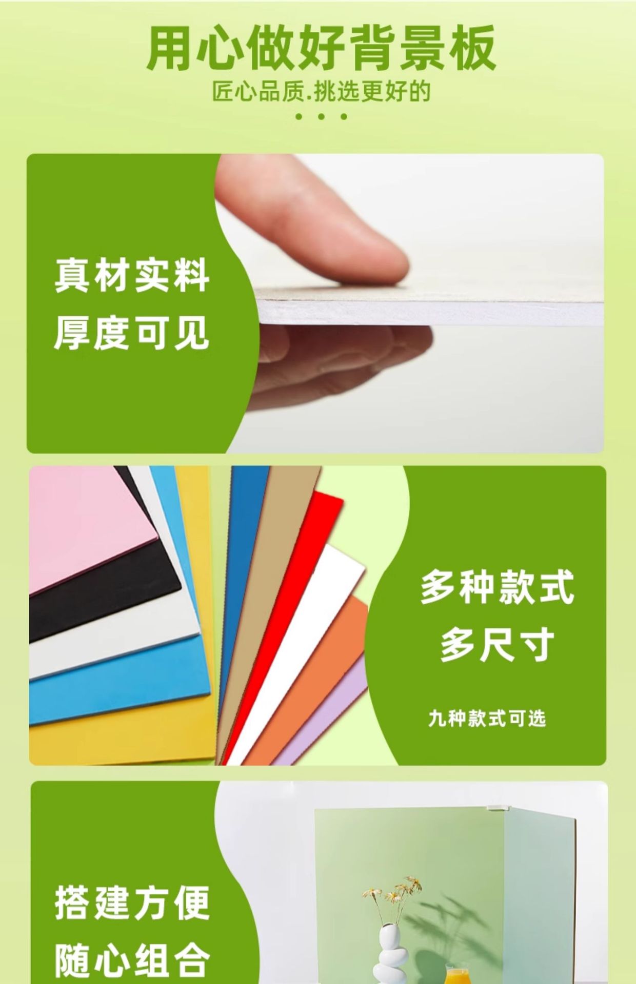 | Colores | Polvo lila morado/primavera 60*60cm,Mika/caque amarillo 40*40cm,Mika/caque amarillo 60*60cm,[Estilo de agujero de pared] Mika/caqi amarillo 60*60cm,Mika/caqi amarillo 80*80cm,Mika/caqi amarillo 80*120cm,Piel en polvo/blanco 40*40cm,Polvo blanco/piel 60*60cm,[Modelo de agujero de pared] Polvo muscular/blanco 60*60cm,Polvo blanco/piel 80*80cm,Polvo blanco/piel 80*120cm,Ágata amarillo/bermellón 40*40cm,Ágata amarillo/bermellón 60*60cm,[Estilo de agujero de pared] Ágata amarillo/bermellón 60*60cm,Ágata amarillo/bermellón 80*80cm,Ágata amarillo/bermellón 80*120cm,Blanco 40*40cm,Blanco 60*60cm,[Estilo de agujero de pared] Blanco 60*60cm,80*80 cm blanco,Blanco 80*120cm,Azul esmeralda claro/azul mediterráneo 40*40cm,Azul esmeralda claro/azul mediterráneo 60*60cm,[Estilo de agujero de pared] Azul verde claro/azul mediterráneo 60*60cm,Azul esmeralda claro/azul mediterráneo 80*80cm,Azul esmeralda claro/azul mediterráneo 80*120cm,Verde hierba/verde cebolla verde oscuro 40*40cm,Verde hierba/verde cebolla verde oscuro 60*60cm,Verde hierba/verde cebolla verde 80*80cm,Verde hierba/verde cebolla verde oscuro 80*120cm,Negro/blanco 40*40cm,Negro/blanco 60*60cm,Negro/blanco 80*80cm,Negro/blanco 80*120cm,Ceniza de neblina/ceniza de roca lunar 40*40cm,Ceniza de neblina/ceniza de roca lunar 60*60cm,[Modelo de agujero de pared] Ceniza de roca lunar/ceniza de neblina 60*60cm,Ceniza de neblina/ceniza de roca mensual 80*80cm,Ceniza de neblina/ceniza de roca mensual 80*120cm,Lavanda púrpura/rojo oscuro 40*40cm,Lavanda púrpura/rojo oscuro 60*60cm,[Estilo de agujero de pared] Lavanda púrpura/rojo oscuro 60*60cm,Lavanda púrpura/rojo oscuro 80*80cm,Azulejos de pared en blanco y negro 60*60cm,Azulejos de pared en blanco y negro 40*40cm,Bolsa de lona portátil 65*65cm (puede contener 5 piezas),[Doble cara 40*40cm] Morandi/blanco mate,[Doble cara 60*60cm] Morandi/blanco mate,Combinación recomendada ☆ 9 hojas [doble cara] 40*40cm,Combinación recomendada ☆ 9 hojas [doble cara] 80*80cm,Combinación recomendada ☆ 9 hojas [de doble cara] 60*60cm,3 hojas blancas 60*60cm (enviar papel de fondo * 2 cinta * 1),Juego combinado de 22 hojas (60*60cm),Combinación de venta caliente uno [blanco * 2 blanco (estilo de agujero de pared) * 1 panel * 1] 60*60,Combinación de venta caliente dos [azul esmeralda claro/azul mediterráneo hierba verde/cebolla verde verde ágata amarilla/bermellón (tipo agujero de pared) * 1 panel * 1] 60*60,Tres arcos blancos 40*40cm,Pared de ladrillo blanco/blanco puro 40*40cm,Mármol negro/ladrillo azul antiguo 40*40cm,Ladrillo azul antiguo/blanco esmerilado 40*40cm,Madera antigua gris/blanco puro 40*40cm,Madera de ingeniería/Blanco puro 40*40cm,Nogal negro/blanco esmerilado 60*60cm,Piedra con óxido helado / Blanco puro 60*80cm,Tela técnica/blanco puro 80*80cm,Arenisca/blanco puro 80*80cm |