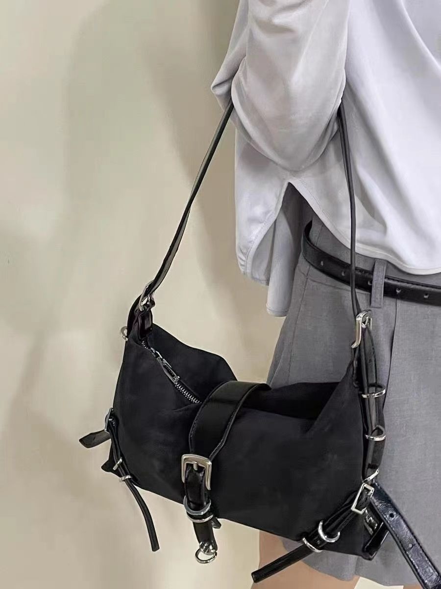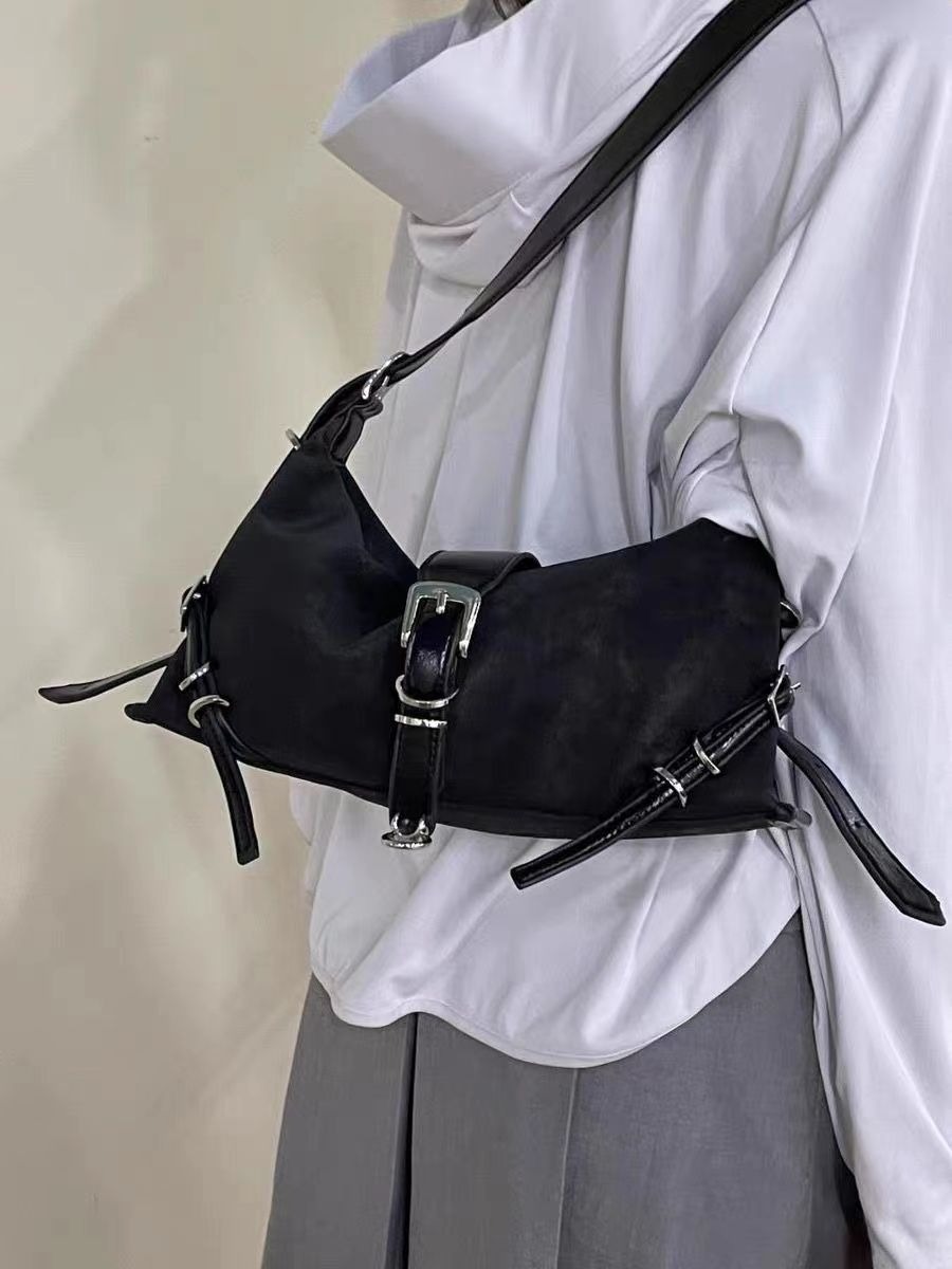 Transfronterizo 2025 primavera y verano nuevo estilo de alta calidad diseño de nicho bolso de viaje diario de un solo hombro bolso de axila con decoración de cinturón