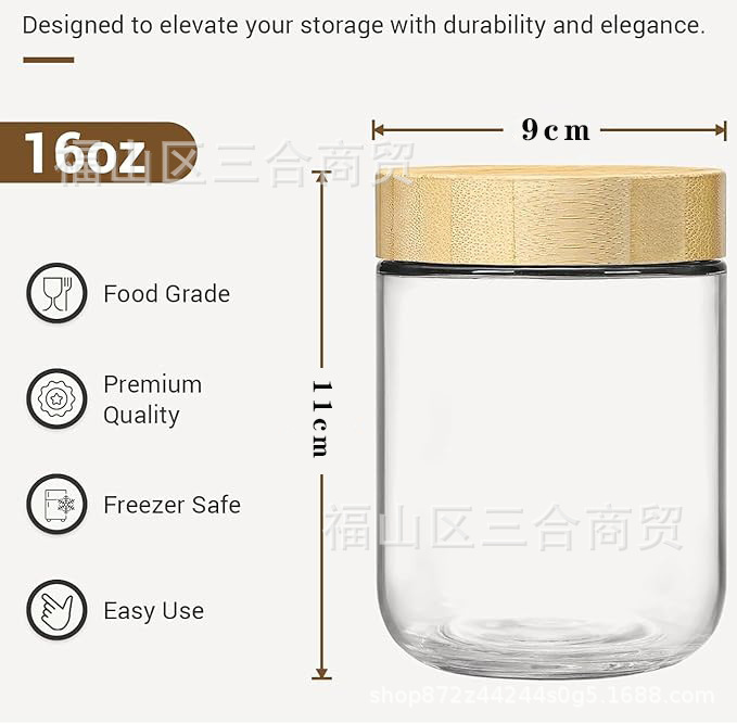 vidrio bambú cubierta sellado tanque de almacenamiento de condimentos de granos gruesos frutas secas té granos de café tanque de almacenamiento sellado a prueba de humedad