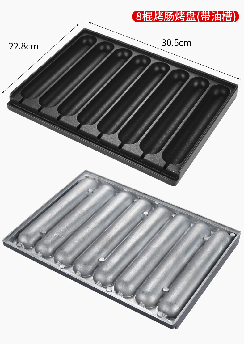 | Especificaciones (largo * ancho * alto) | Tablero de bolas de pescado de 28 agujeros,Placa de salchicha a la parrilla de 8 orificios con tanque de aceite,Plato de salchicha a la parrilla de 8 orificios con boquilla de aceite,Bandeja de salchicha de 6 orificios |