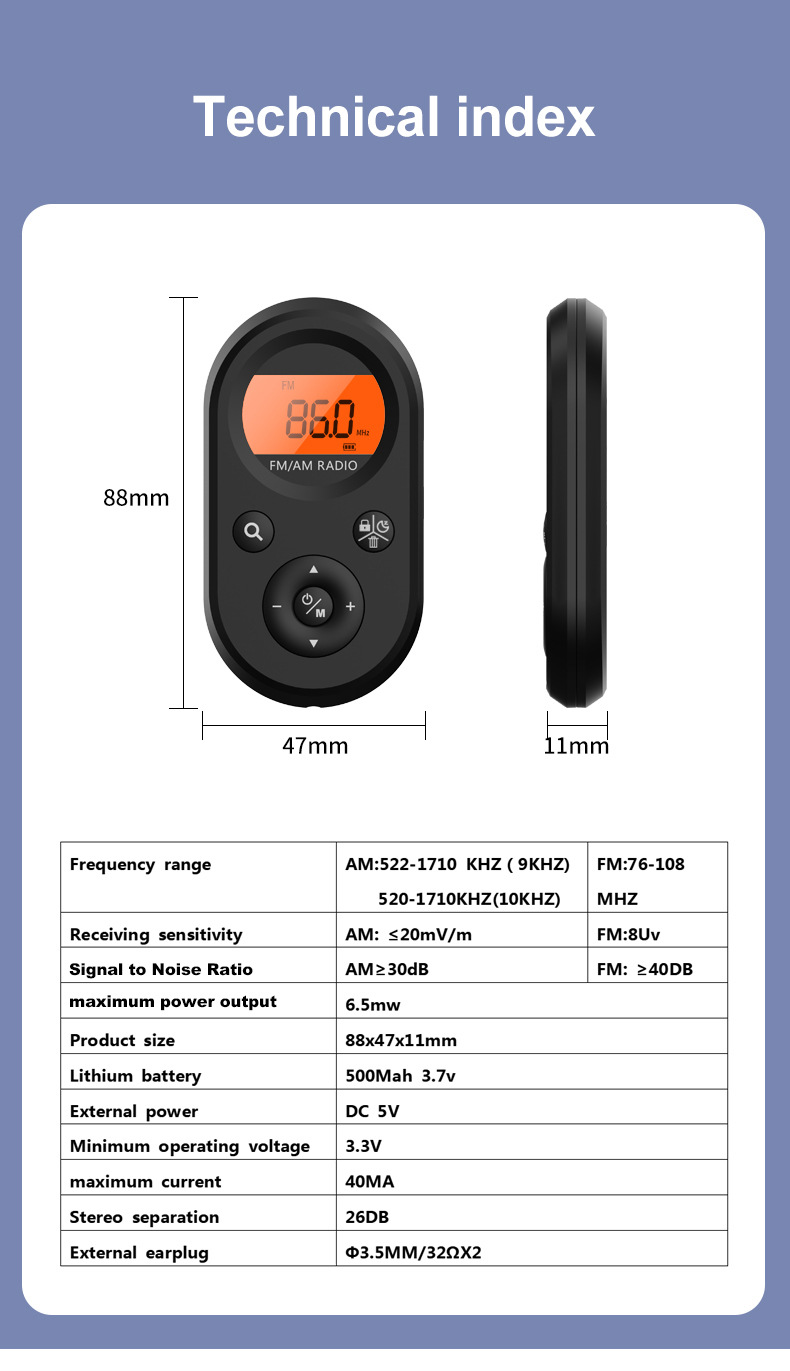 1,产品名称: MI01 AM FM迷你收音机