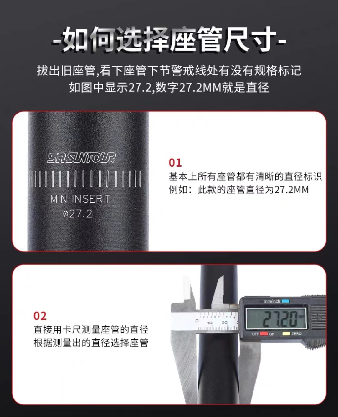 注意: 所有尺寸都是从27.2坐管+相应的变径套 28.6/30/30.1/30.4/30.8/31.8/33.9
