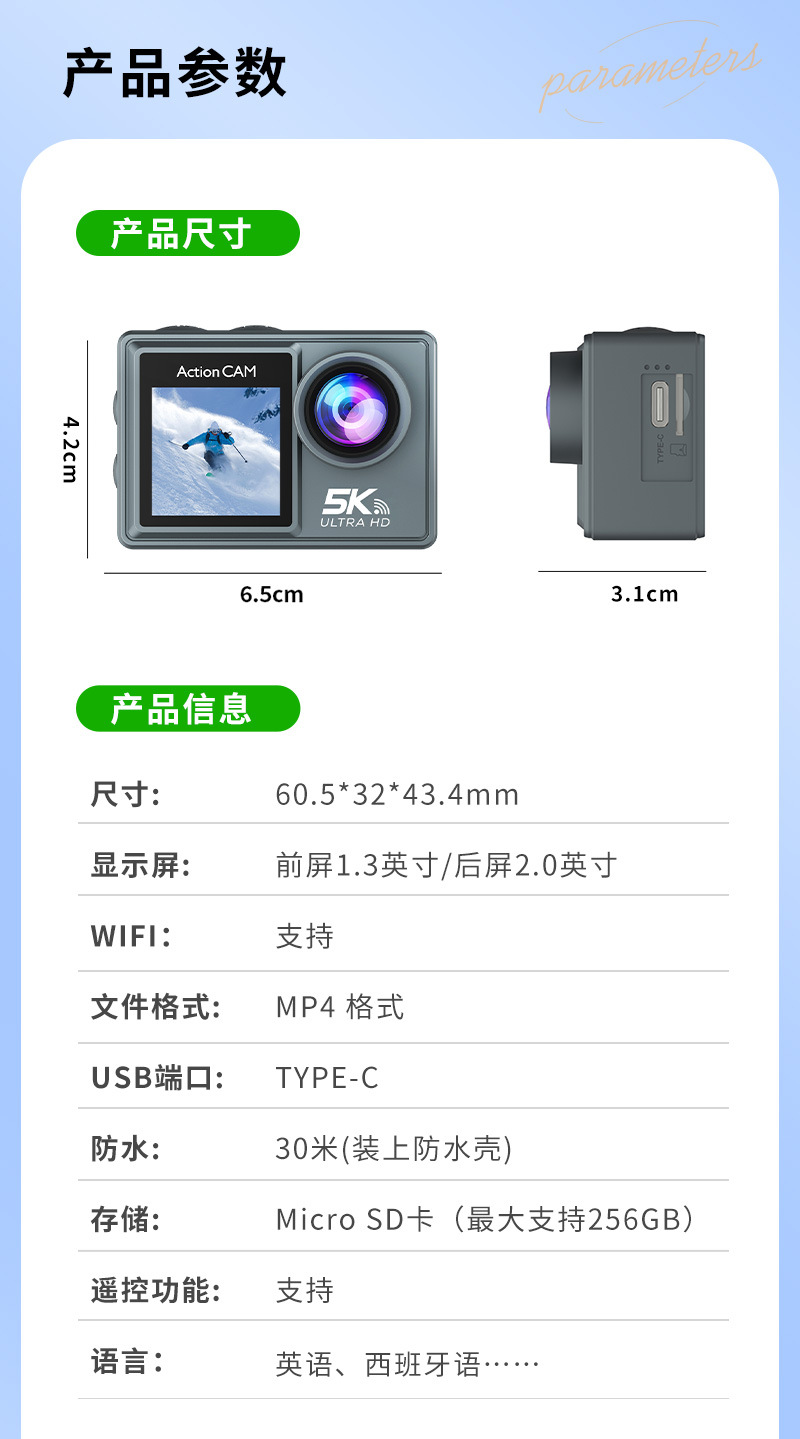 | Colores | Q1-[4K/30 marcos],M40R-[5K/30 marcos],M40TR [5K/30 fotogramas-pantalla doble táctil],M40TRW [5K/30 fotogramas-pantalla táctil inalámbrica] |