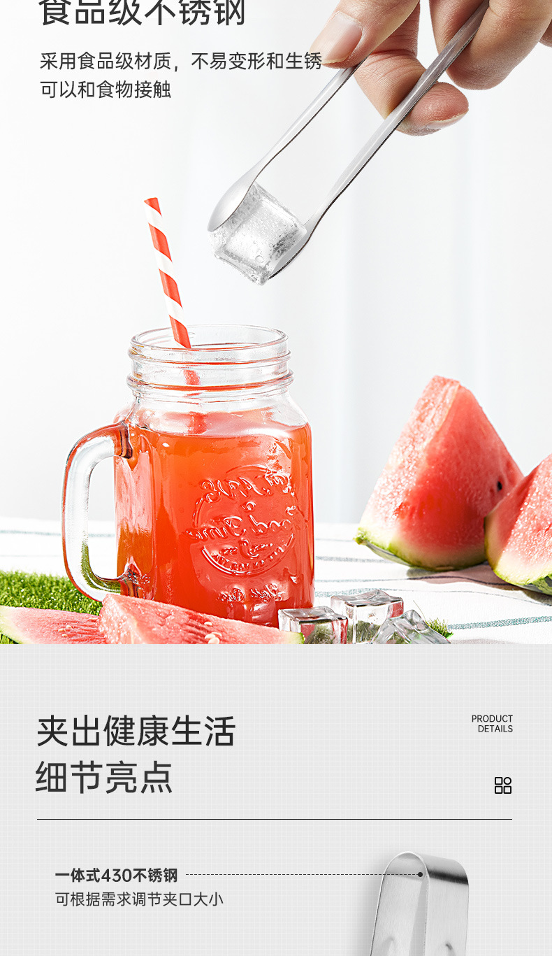 Clip de hielo de barra de acero inoxidable al por mayor de fábrica, caramelo de roca, gránulos de hielo, clip de fruta, clip de pan de comida de cocina