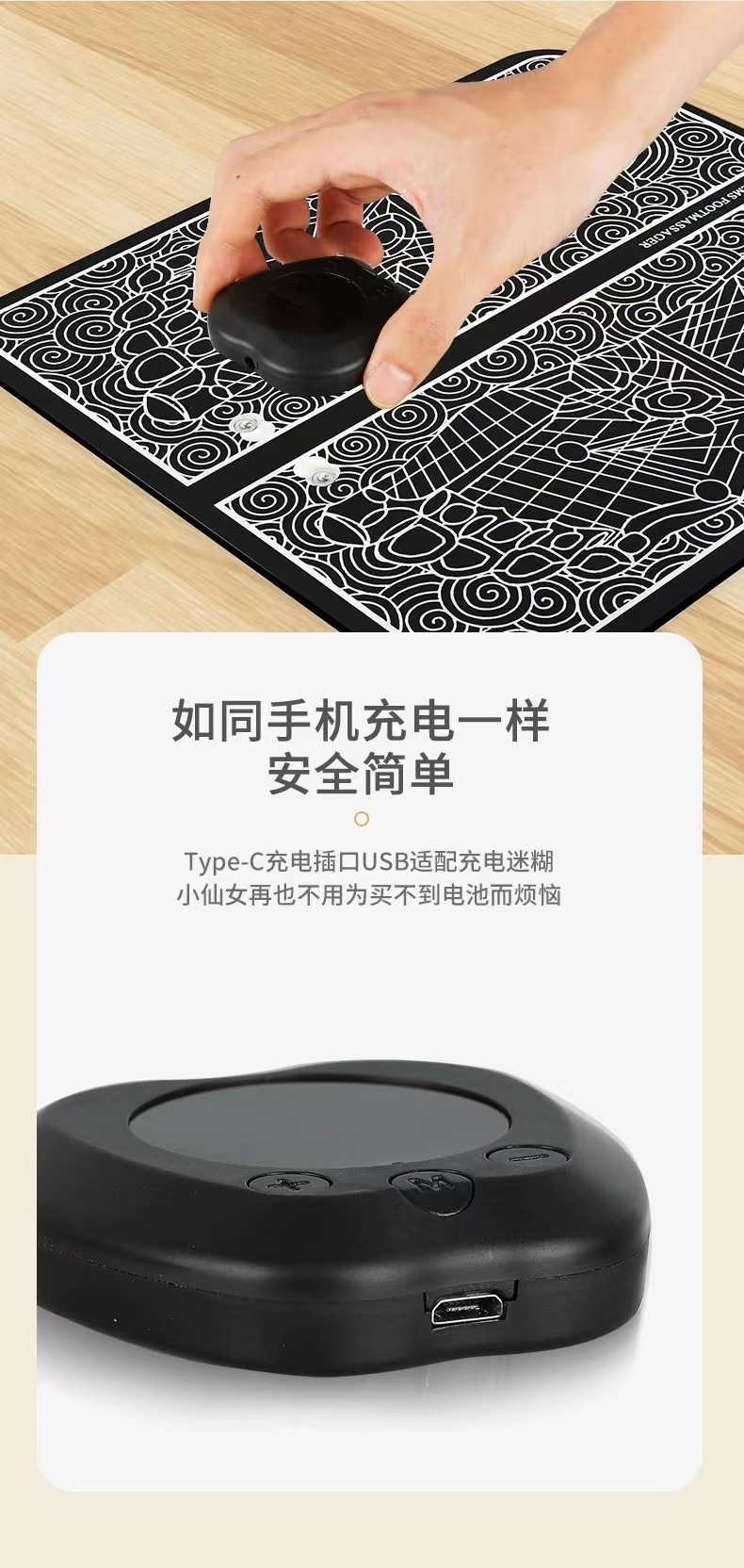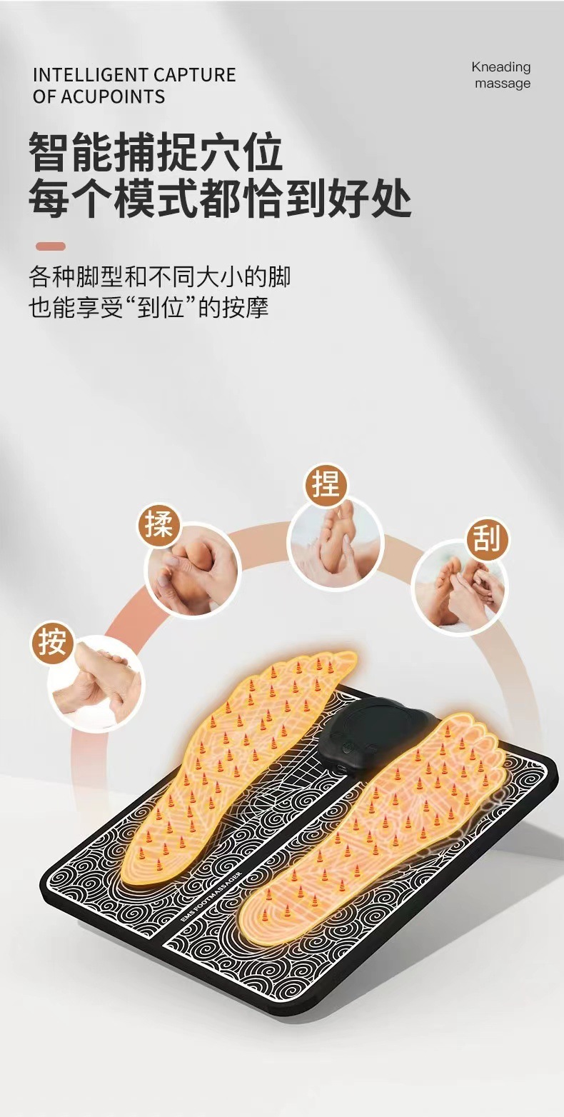 Transfronterizo inteligente EMS almohadilla de masaje de pies máquina de masaje de pies carga USB portátil instrumento de masaje de pies almohadilla de masaje jack host