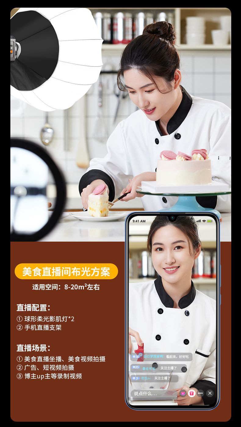 | Ámbito de aplicación principal | Sala de transmisión en vivo, fotografía con luz suplementaria |
