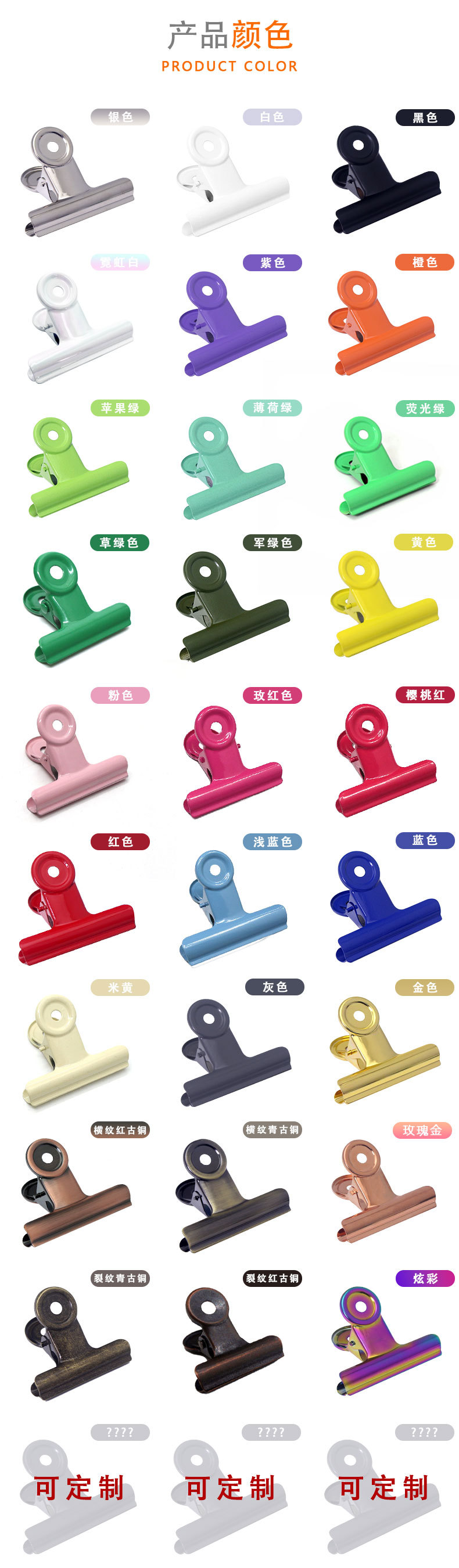 Clip de metal plateado galvanoplastia clip de hierro suministros de oficina al por mayor 22-90mm clip de almacenamiento clip de merienda clip de cola larga