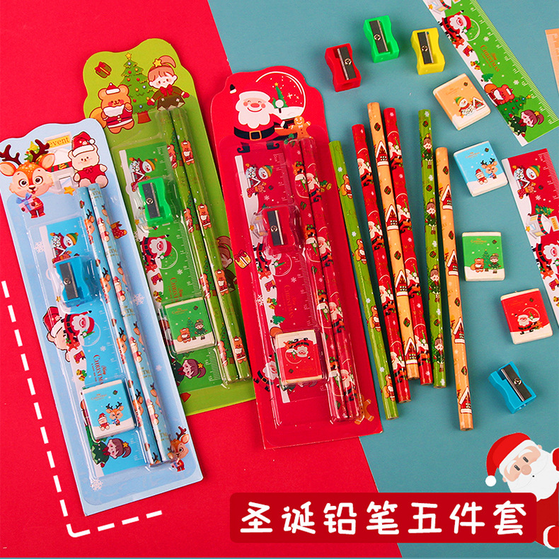 Tarjeta de succión navideña conjunto de cinco piezas estudiante de escuela primaria traje de lápiz actividad de jardín de infantes Premio suministros de papelería de aprendizaje para niños