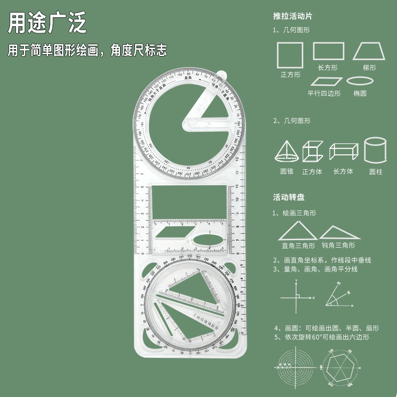 Regla de dibujo multifuncional para estudiantes de primaria y secundaria Regla de geometría Regla de función geométrica Regla de triángulo Goniómetro