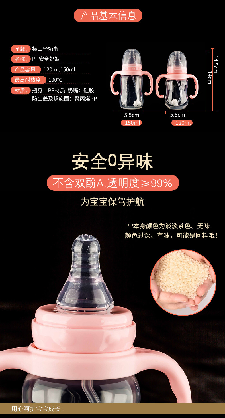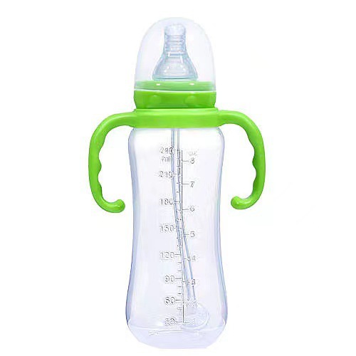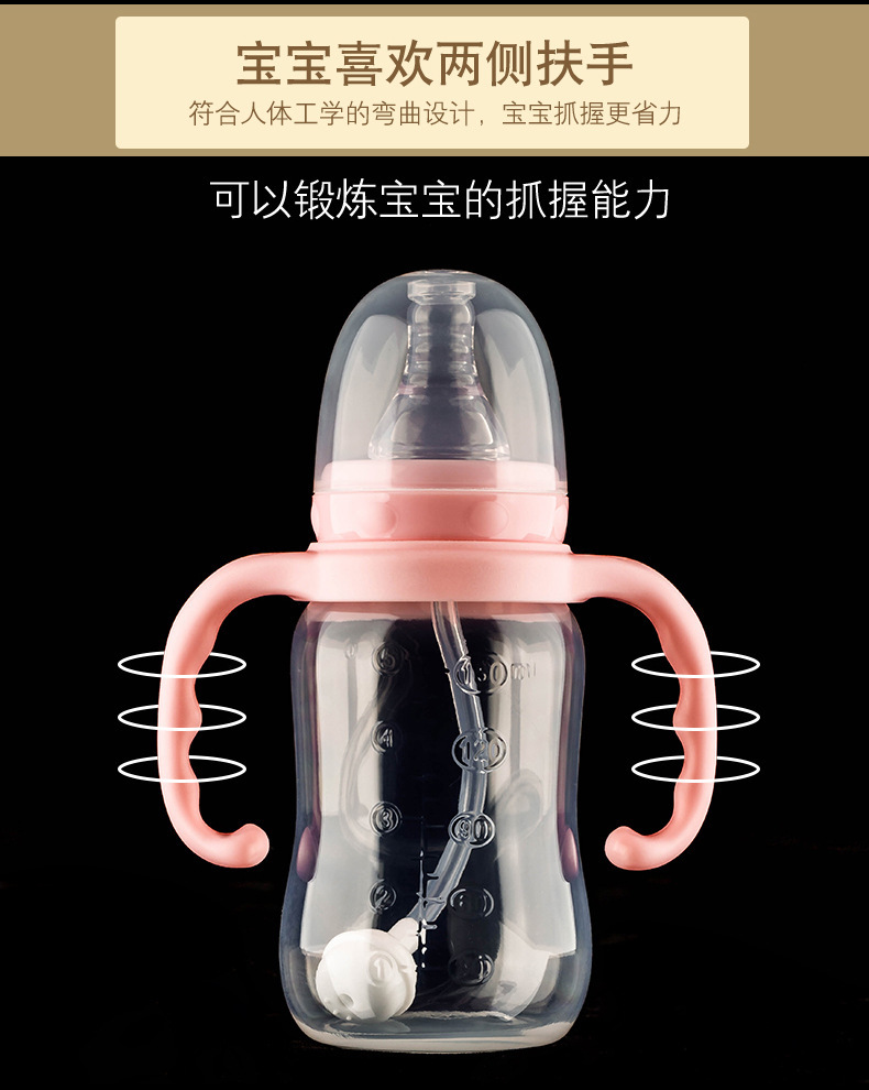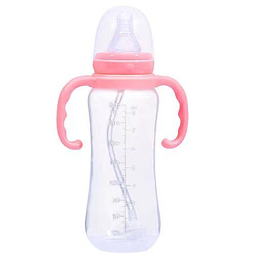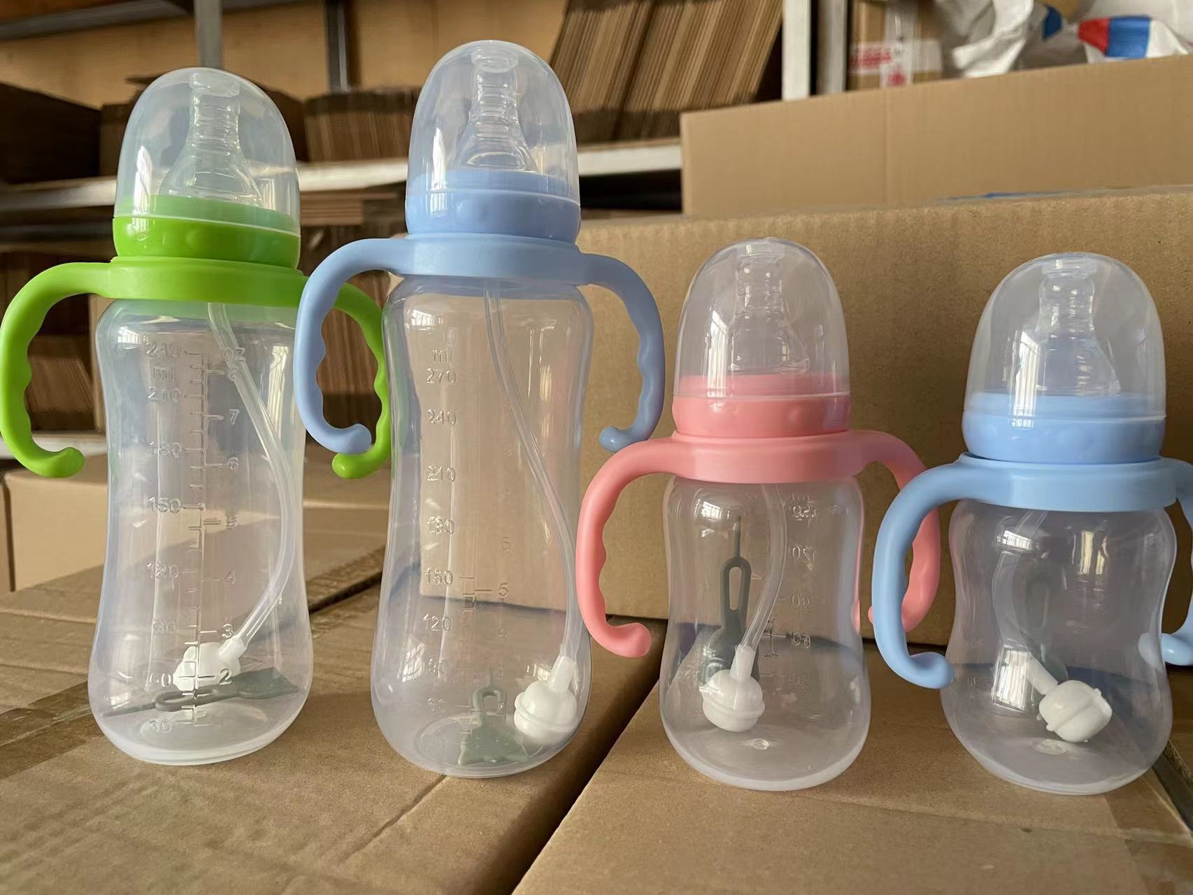 Biberón de PP estándar para bebés, venta al por mayor para madres y bebés, biberón de plástico para recién nacidos con asa y pajita, anticólicos, venta caliente transfronteriza