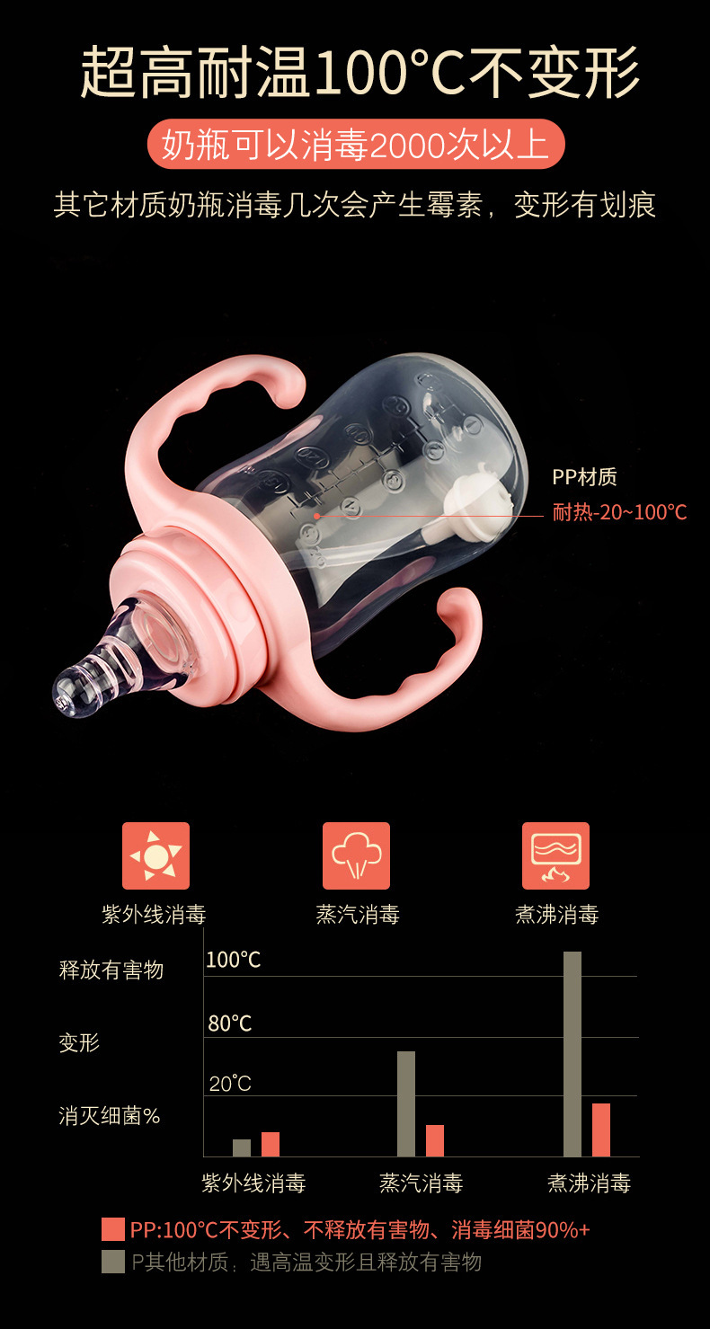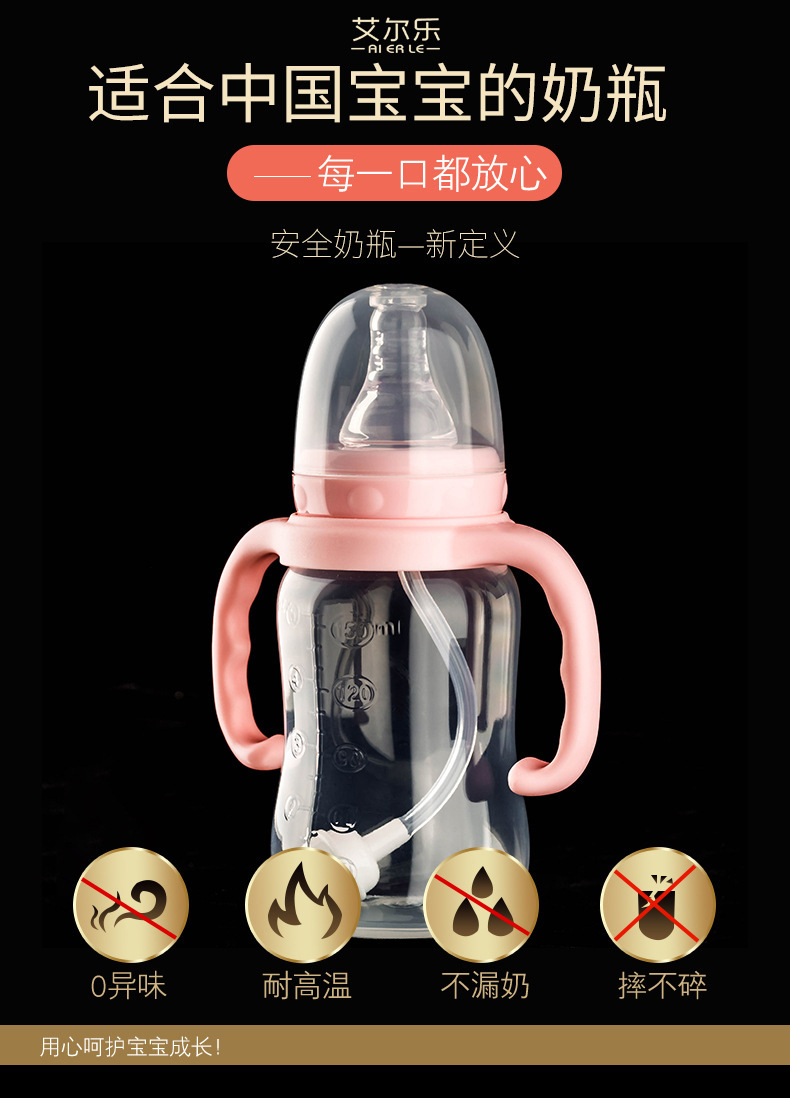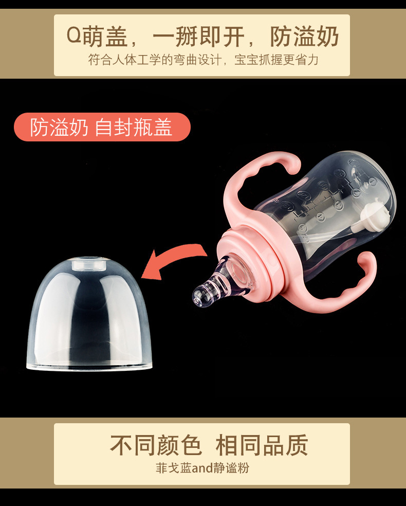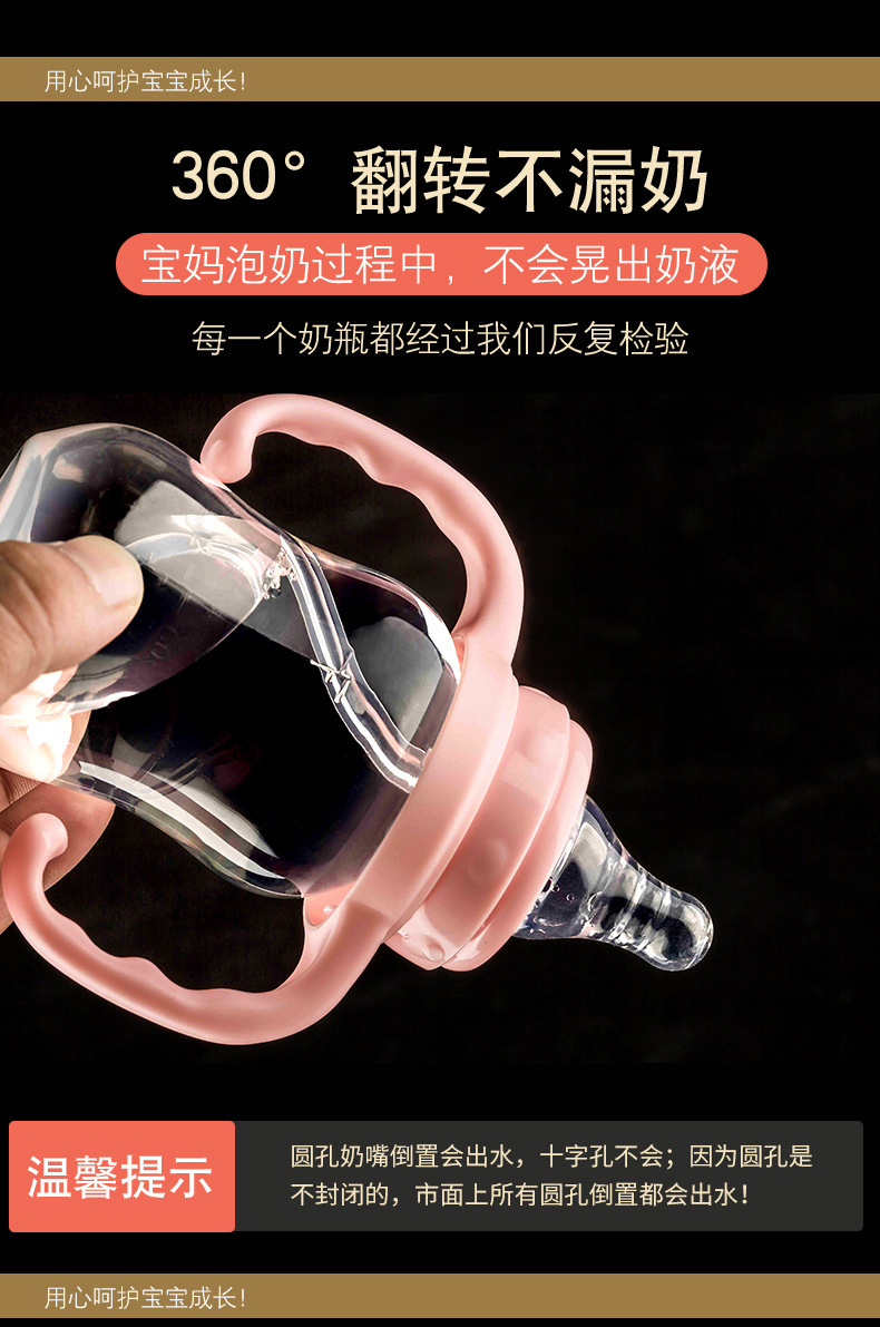 Biberón de PP estándar para bebés, venta al por mayor para madres y bebés, biberón de plástico para recién nacidos con asa y pajita, anticólicos, venta caliente transfronteriza