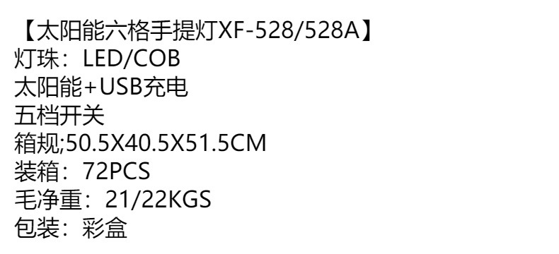 | Color | Lámpara portátil Six-Grid LED [XF-528],COB de la lámpara portátil de la Seis-rejilla [XF-528A] |