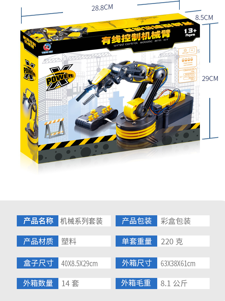 | color | Brazo robótico amarillo [control remoto con cable],Brazo robótico rojo [control remoto inalámbrico],#3 en 1 brazo mecánico hidráulico (azul y blanco),#3 en 1 brazo mecánico hidráulico 【Ingeniería Amarilla】 |