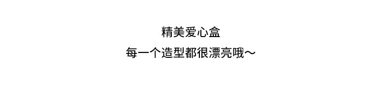 | Colores | Color aleatorio 20 piezas de caja de almacenamiento de amor,Anillo pequeño a granel 1 color aleatorio,100 piezas en barril de colores aleatorios,Pajarita pequeña caja de amor 12 dígitos,Pajarita mediana caja de amor 24 posiciones,Caja de amor de pajarita grande 36 piezas,Caja de gatos 24 piezas,Caja de conejo 6 piezas,Caja de mariposas 8 piezas,Caja de amor pequeña 12 dígitos,Caja de amor mediana 24 piezas |