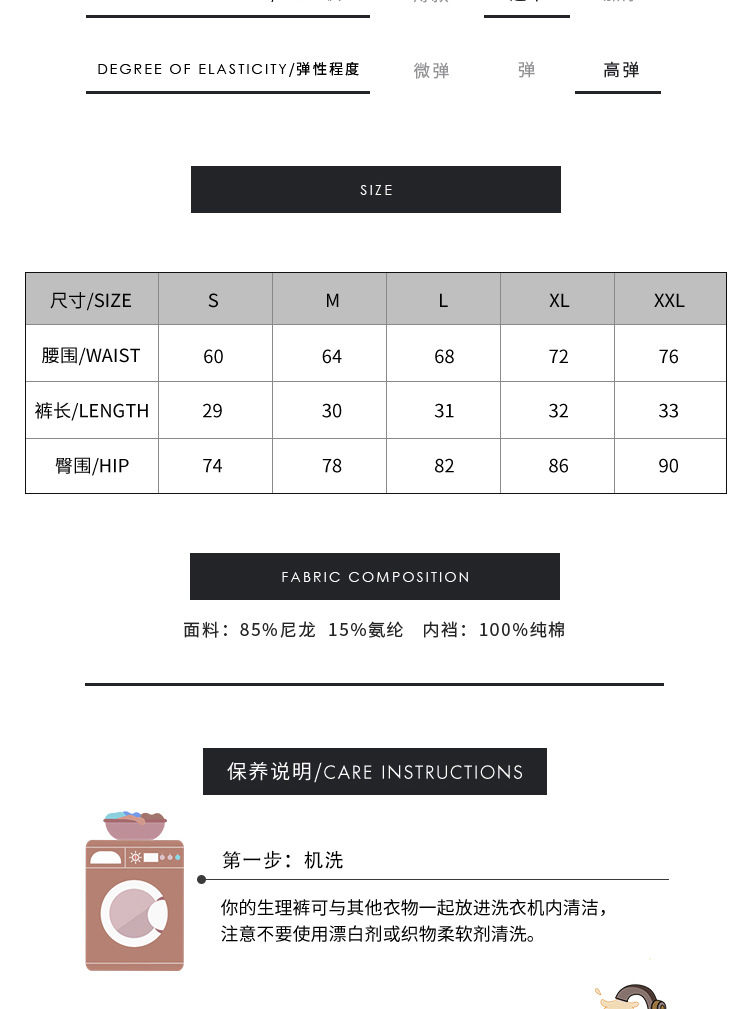 | Contenido de ingredientes de forro de entrepierna | 90% |