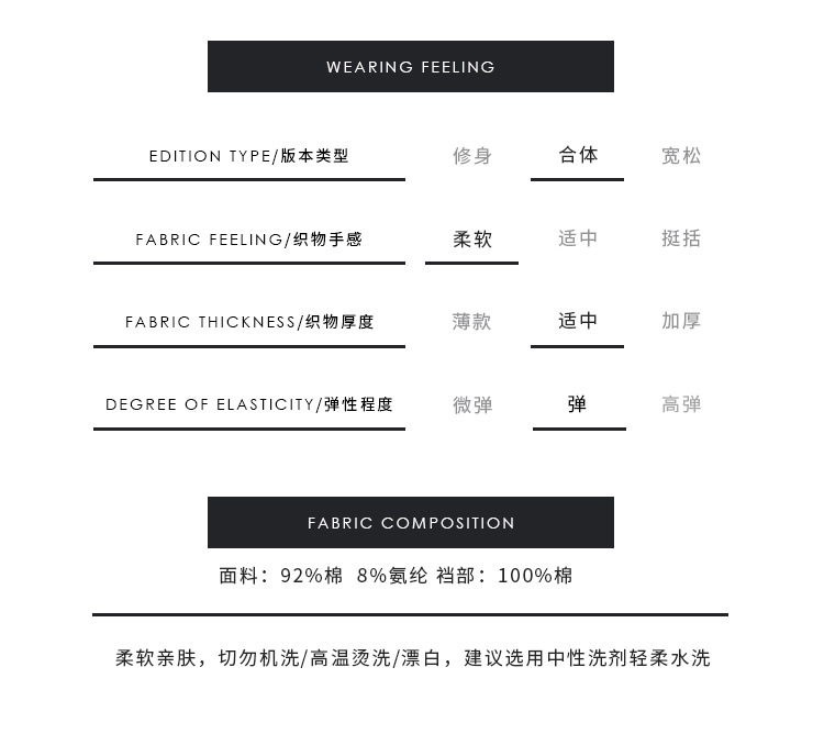 | Contenido de ingredientes de forro de entrepierna | 100 |