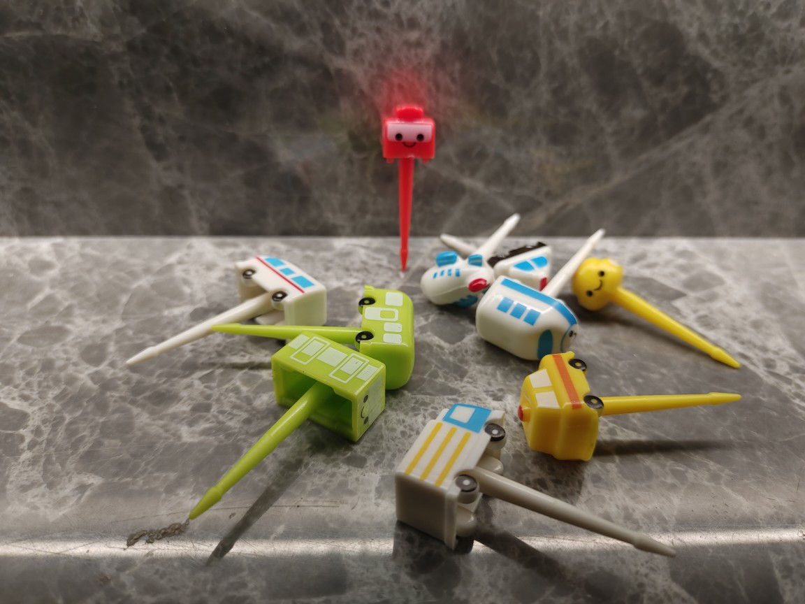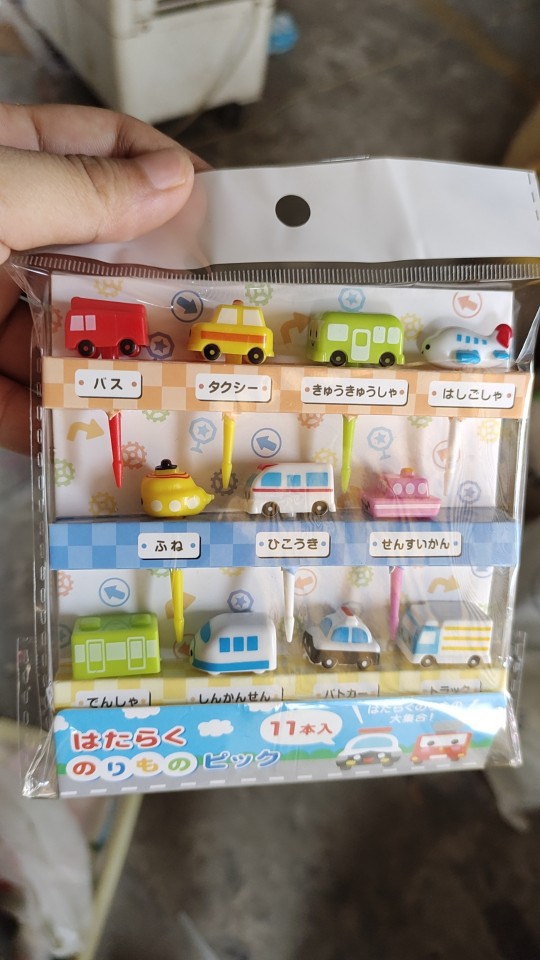 Nuevo estilo japonés fruta palo de dibujos animados coche fruta tenedor once paquete color fijo