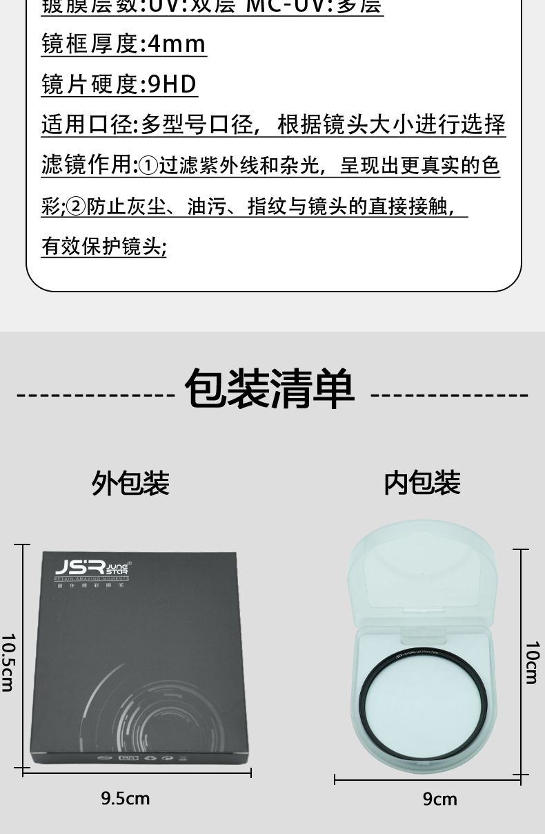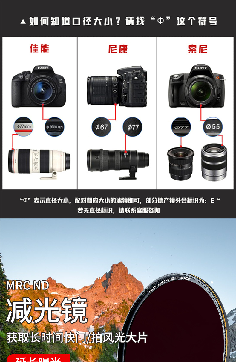 | Color | 62mm JSR-7006-01 ND8,62mm ND16 JSR-7017-01,62mm ND32 JSR-7026-01,JSR-5422-01 ND64 de 62mm,62mm ND1000 JSR-5189-01 |