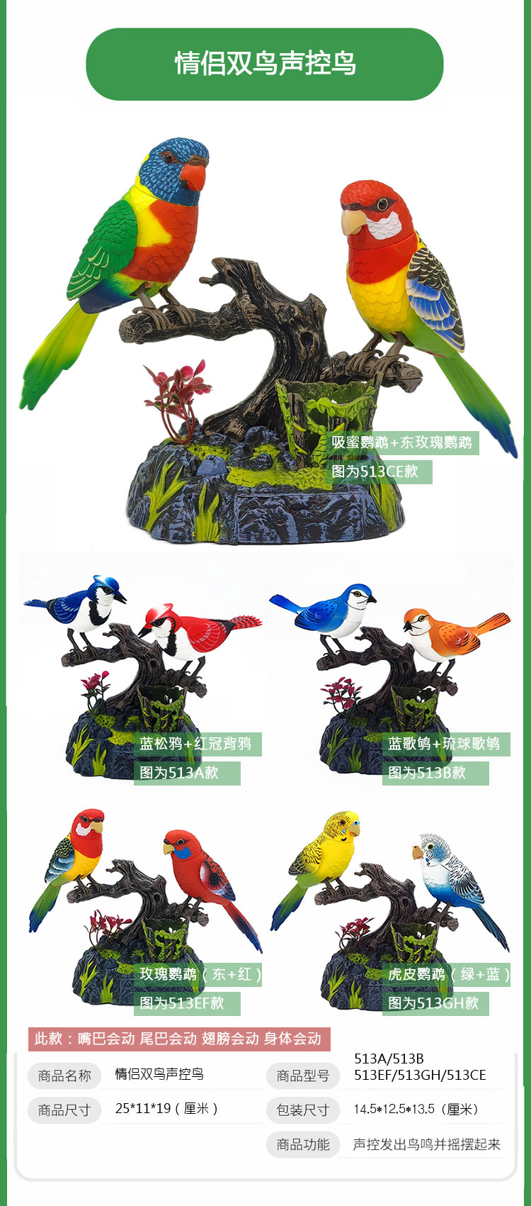 | Número de artículo | Pájaro controlado por voz 1 |