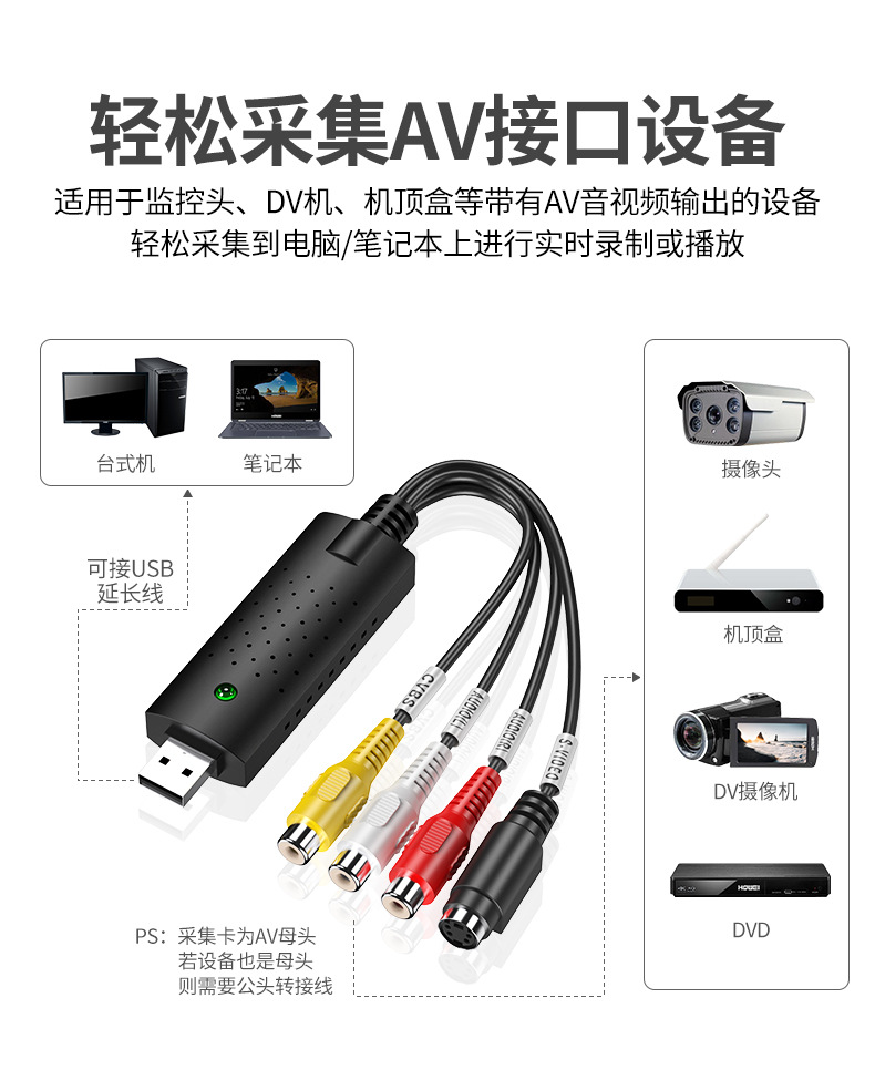 Transfronterizo de un solo canal USB tarjeta de captura AV señal Imagen Colector de vídeo ezcap cámara de vigilancia de vídeo HD