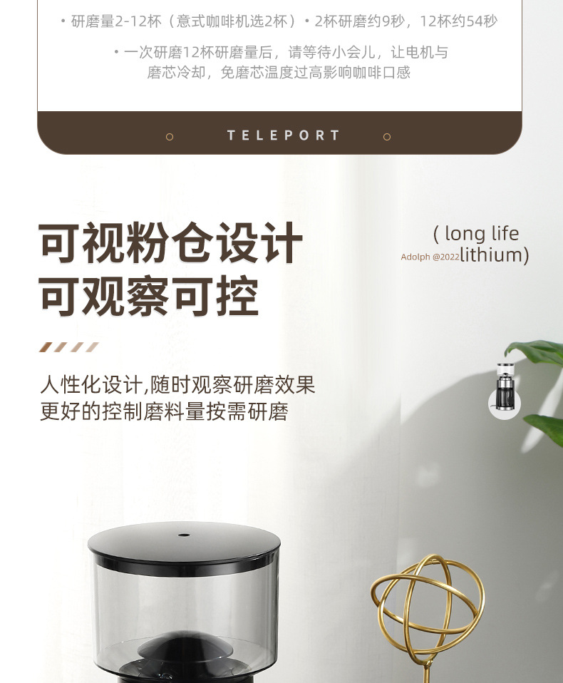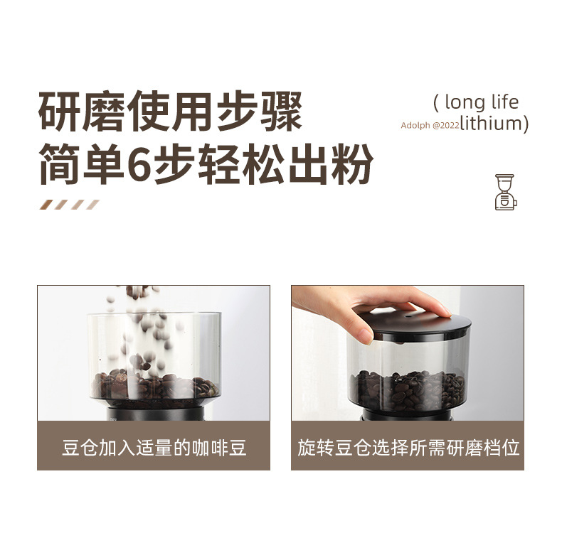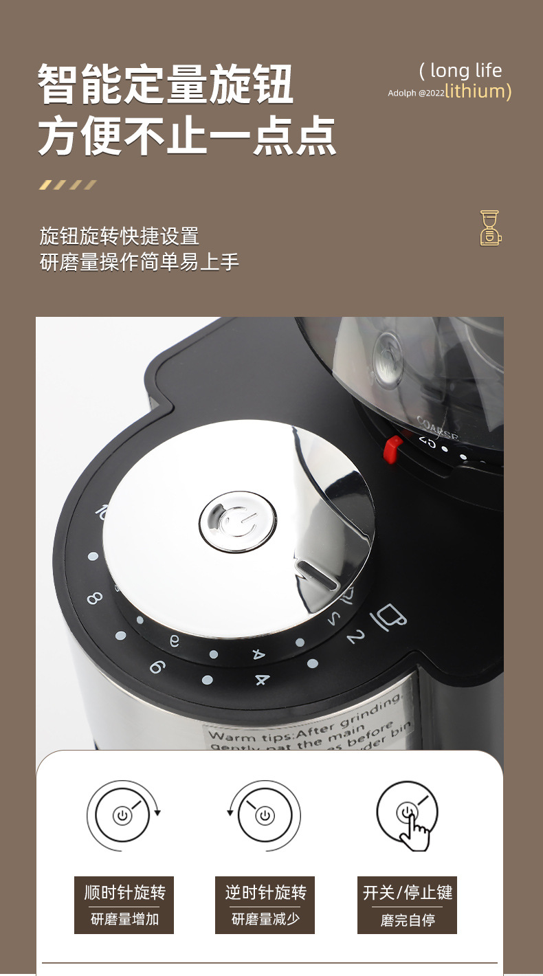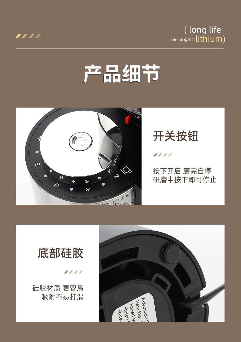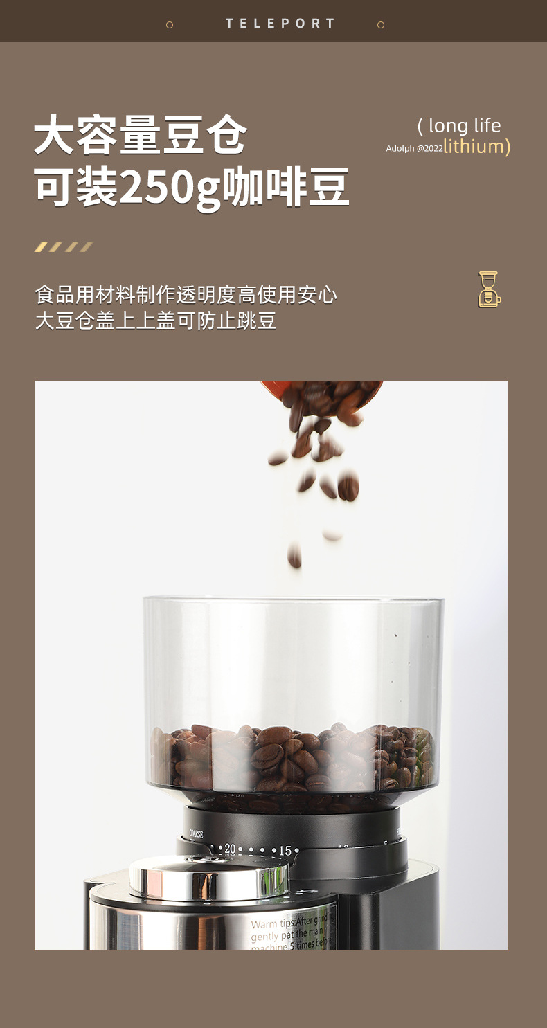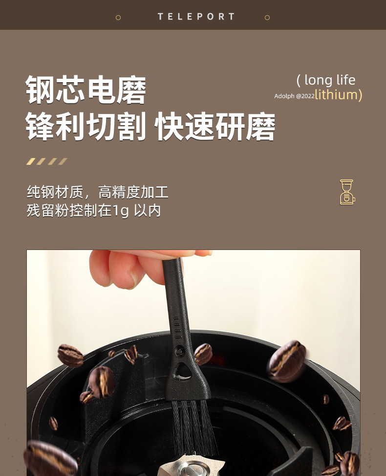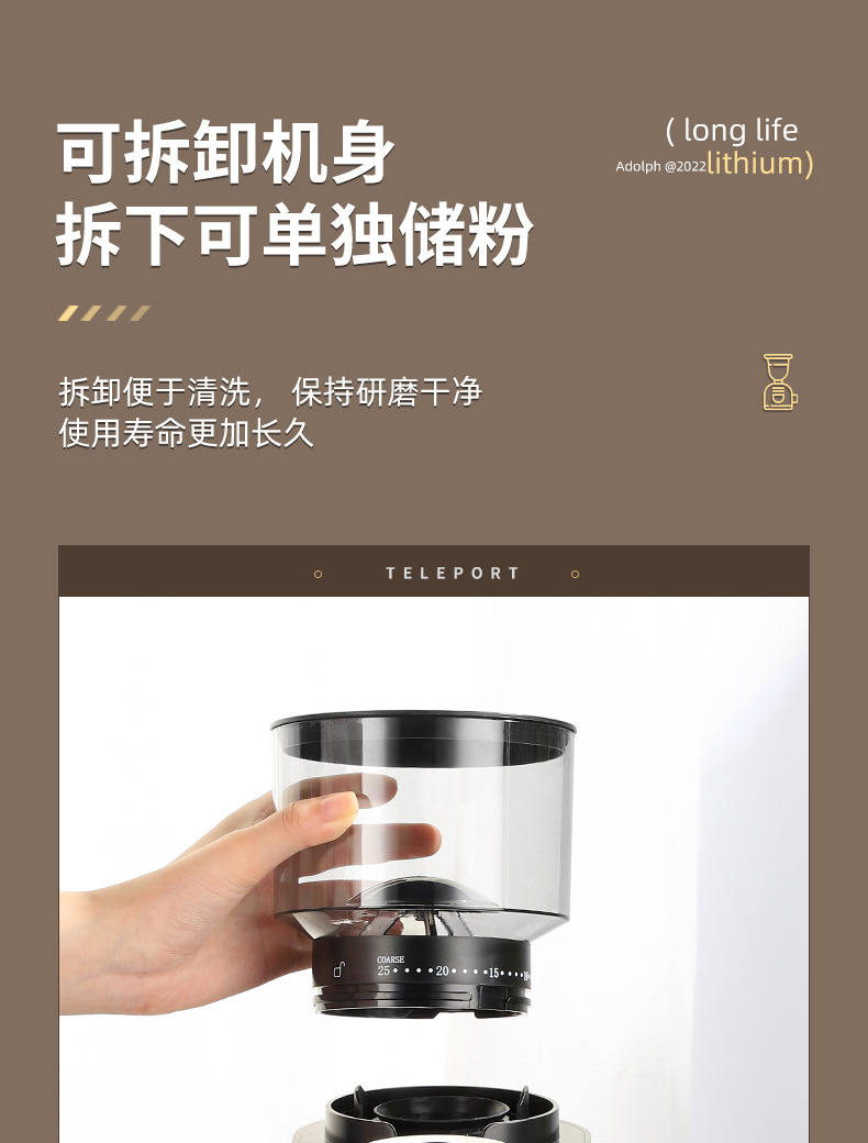 产品配套: 研磨器X1 ,粉托支架X1(直接卡在出粉口下面),毛刷X1(在豆仓盖子下面),密封罐X1 ,接粉环X1