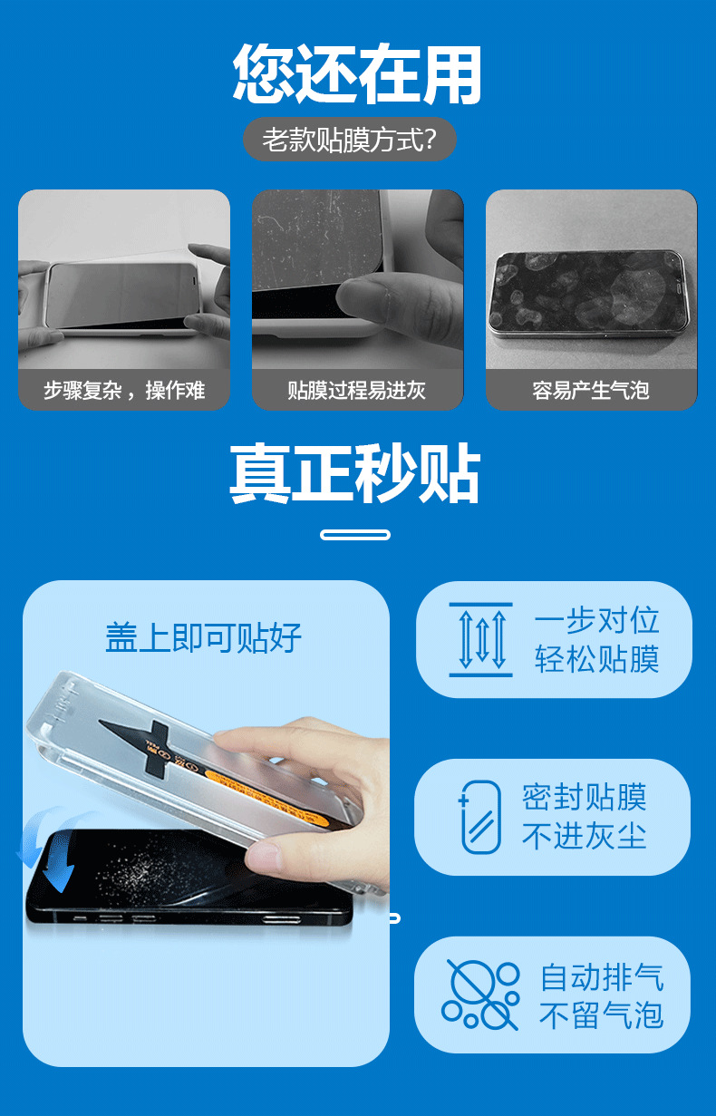| Características de la película | alta definición,A prueba de explosiones,A prueba de polvo,Antihuellas,Anti caída,pantalla completa,Anti-mirones,Segunda caja de pegatinas |