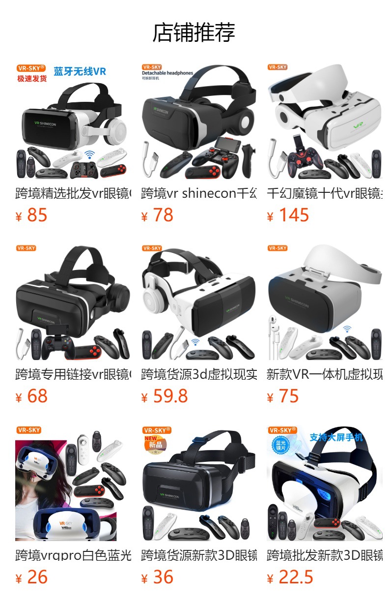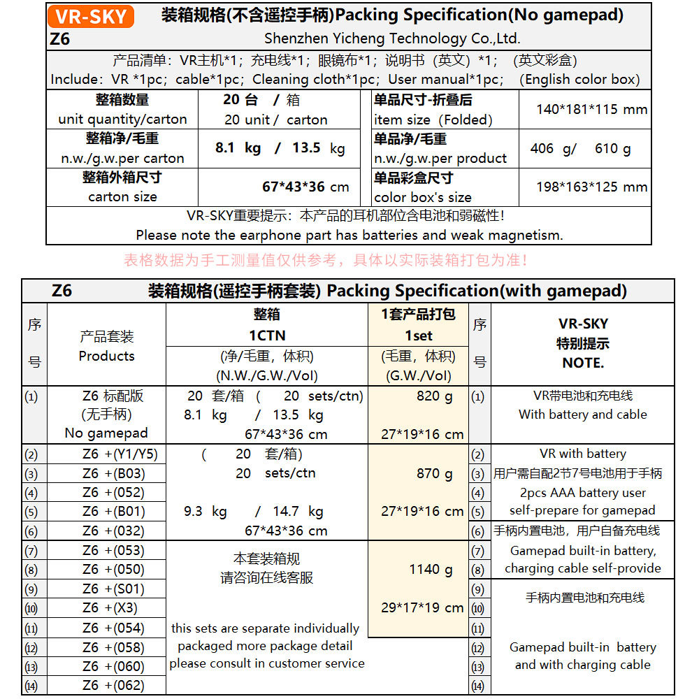 装箱标配: VR眼镜*1;USB充电线,说明书(英文)*1;擦镜布*1;英文包装*1