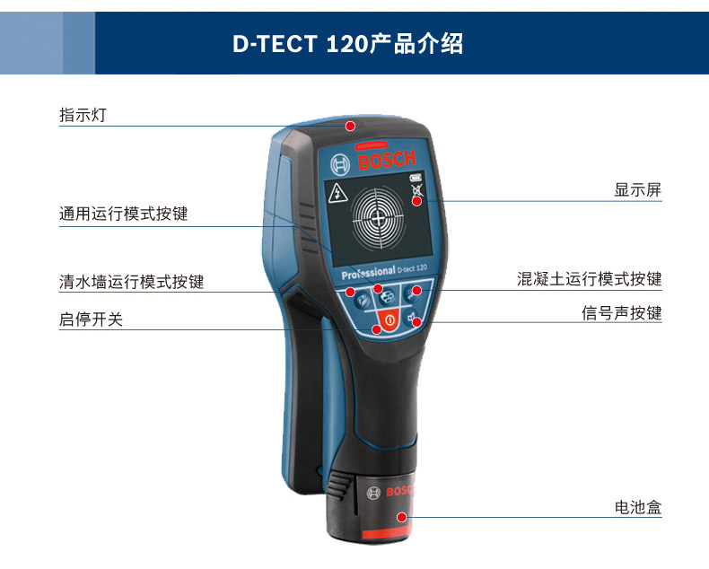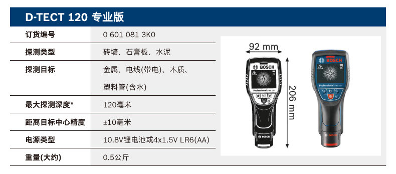 | Especificaciones | D-TECT 120 [estándar],D-TECT 120 [1 potencia y 1 carga 12V-2.0AH],GMS120 [Configuración estándar] |