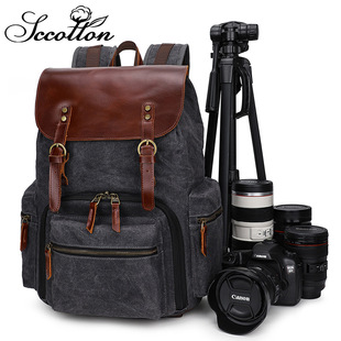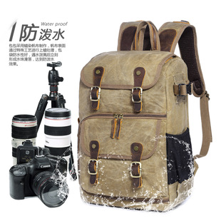 新款摄影包单反数码双肩背包防水大容量腊染帆布背包户外相机包