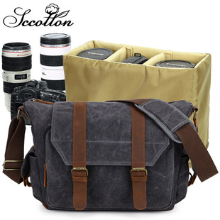 单反相机包跨境防水蜡染帆布单反内胆拍立得多功能复古双肩摄影包