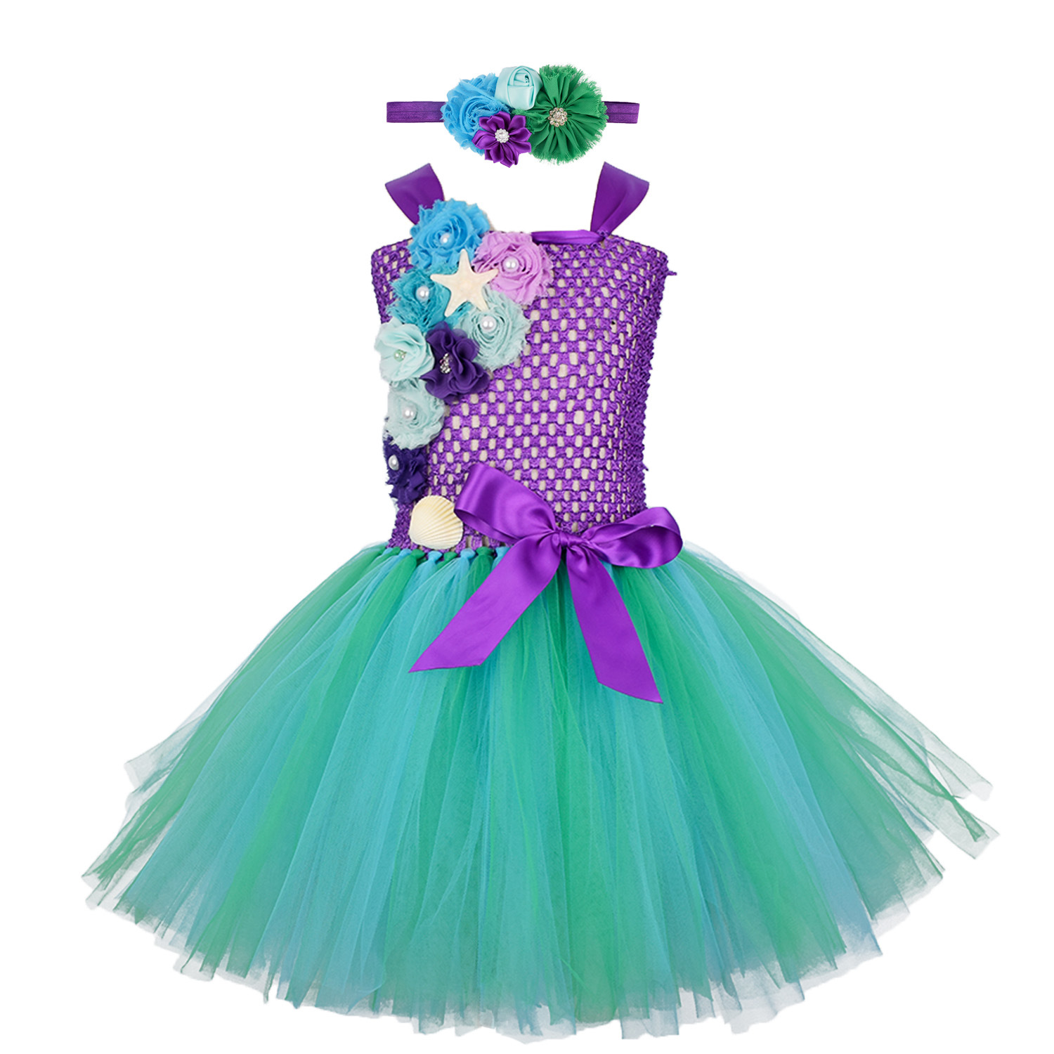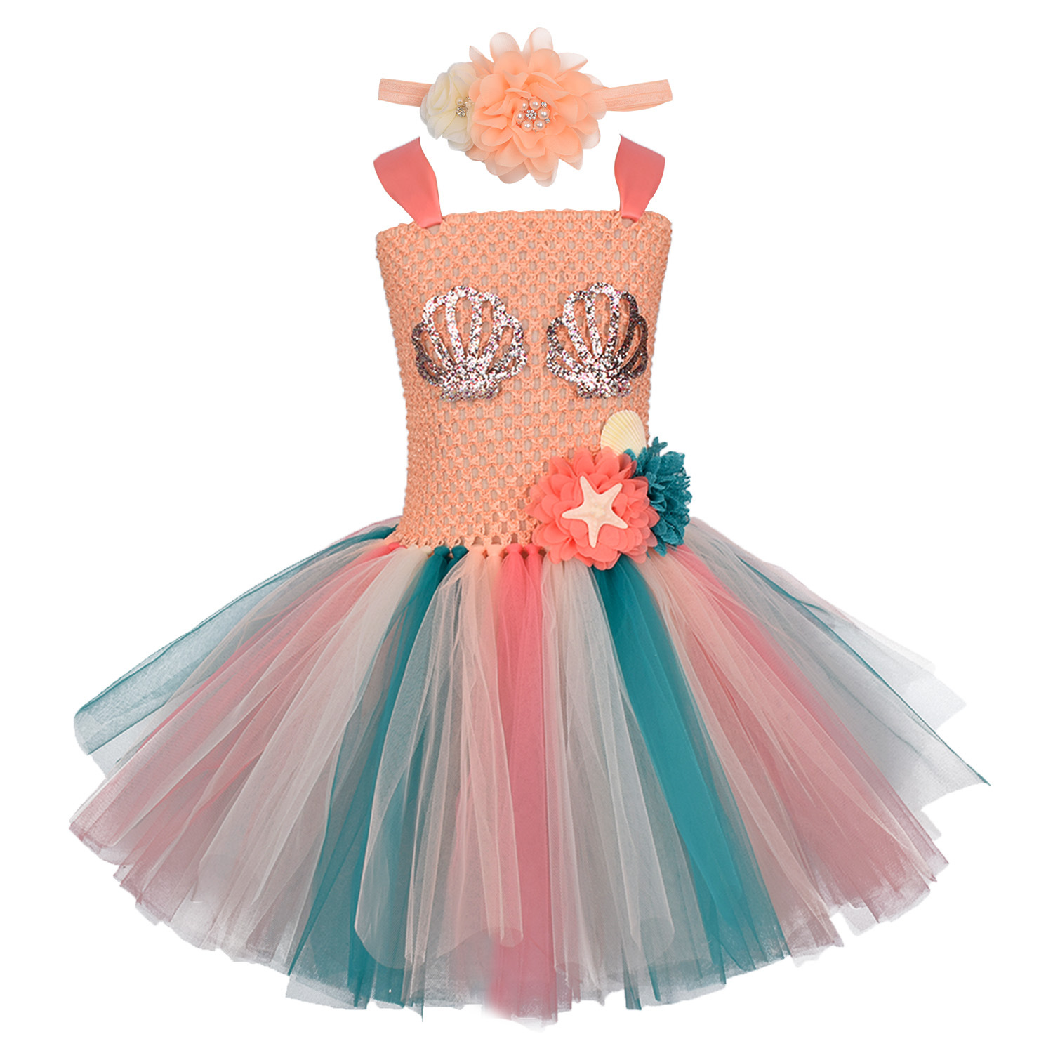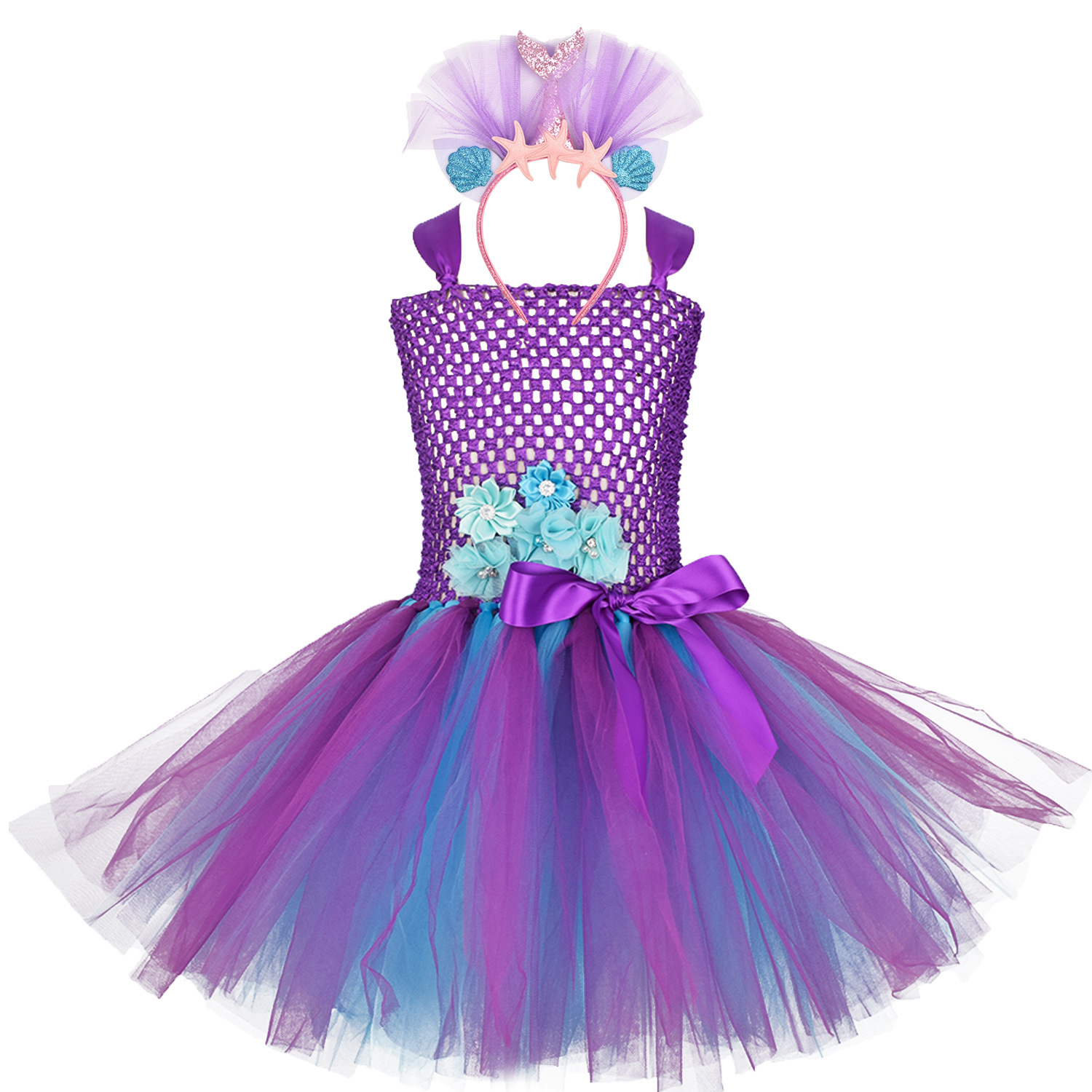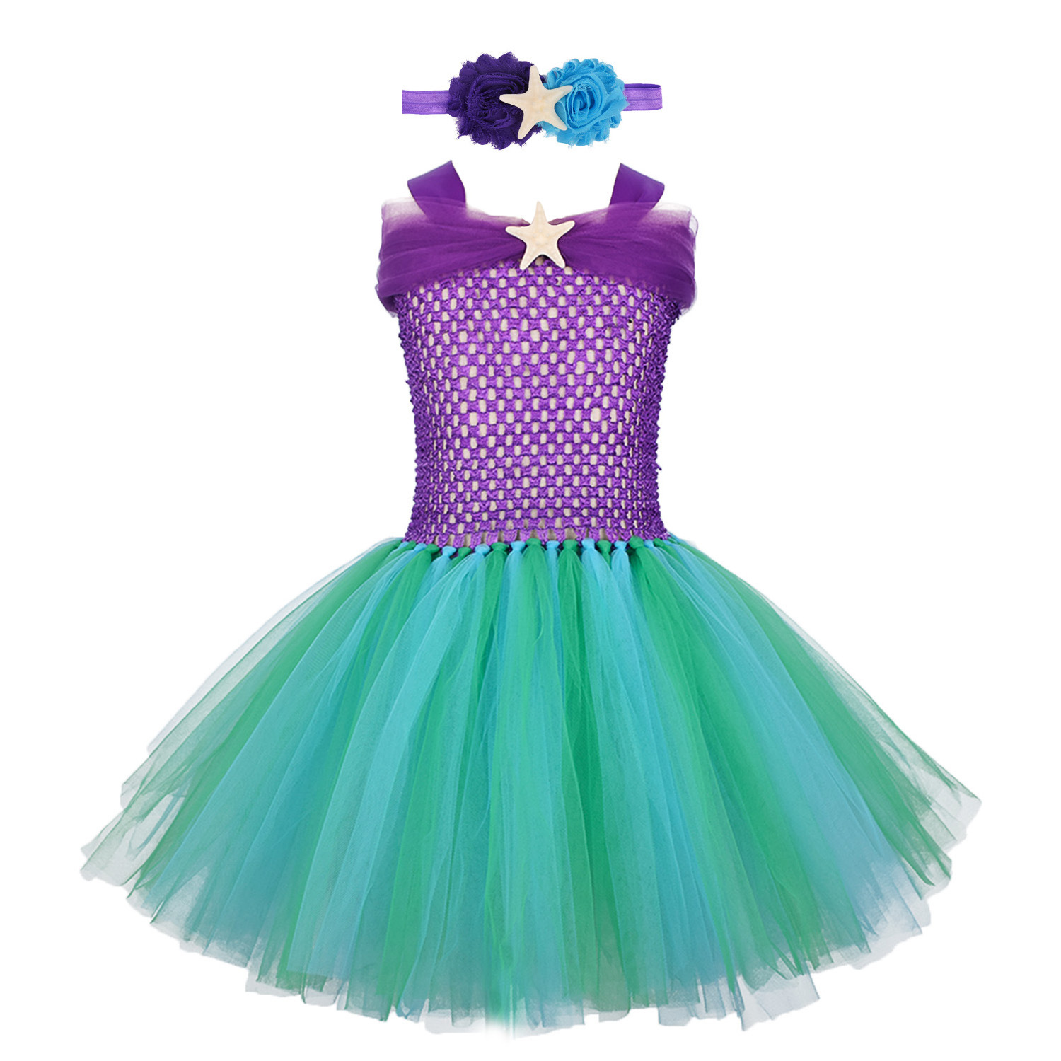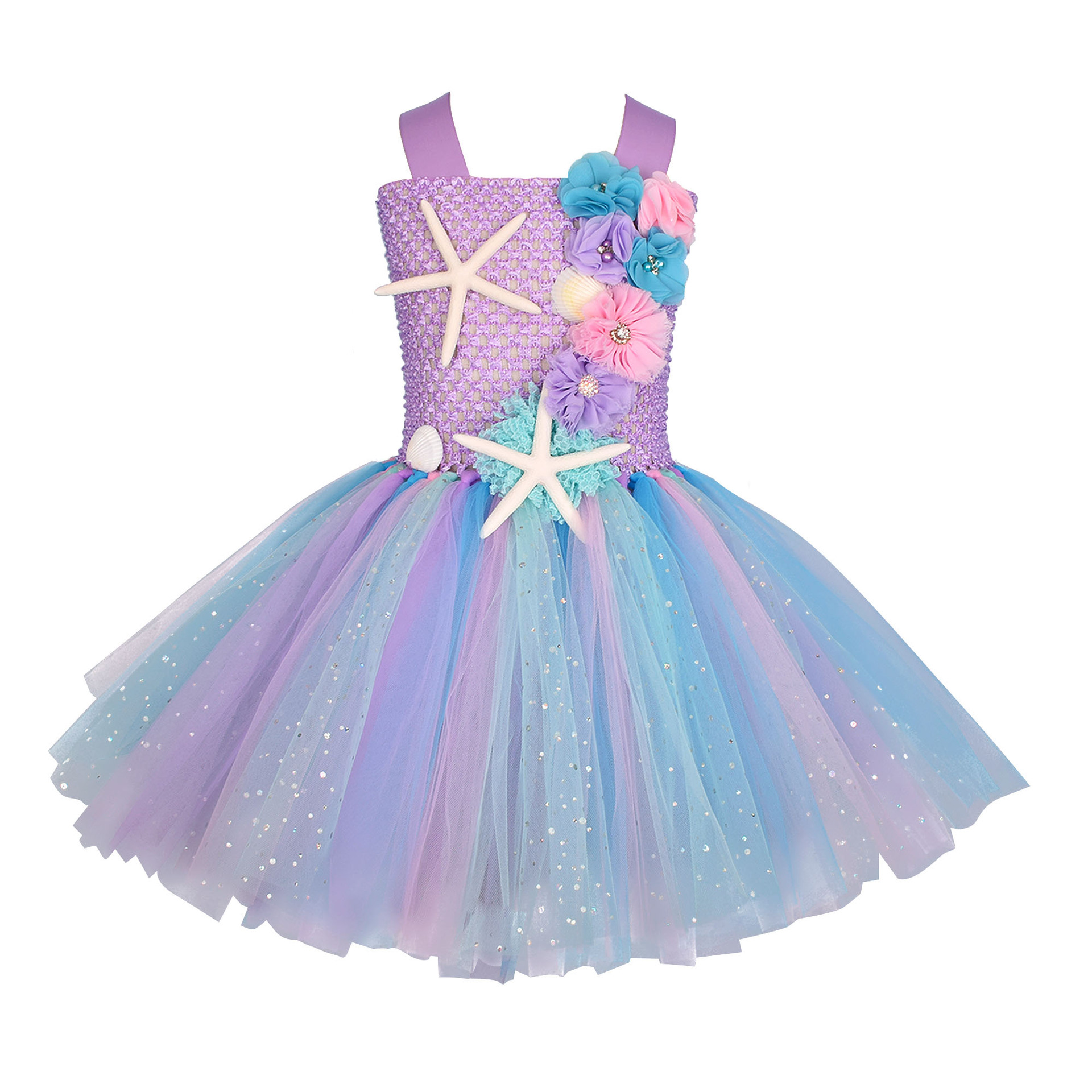 跨境热销女童美人鱼主题网纱蓬蓬裙 生日派对万圣节舞台表演装扮服饰 亚马逊跨境货源
