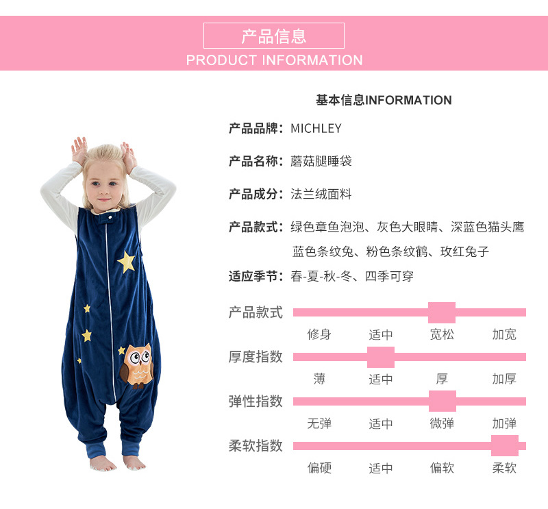 | Color | Saco de dormir conejo azul rayado,Saco de dormir Rose Rabbit,Saco de dormir Ojos grandes grises,Saco de dormir búho azul oscuro,Saco de dormir a rayas Rosa Crane,Saco de dormir pulpo burbuja verde |