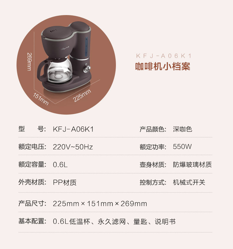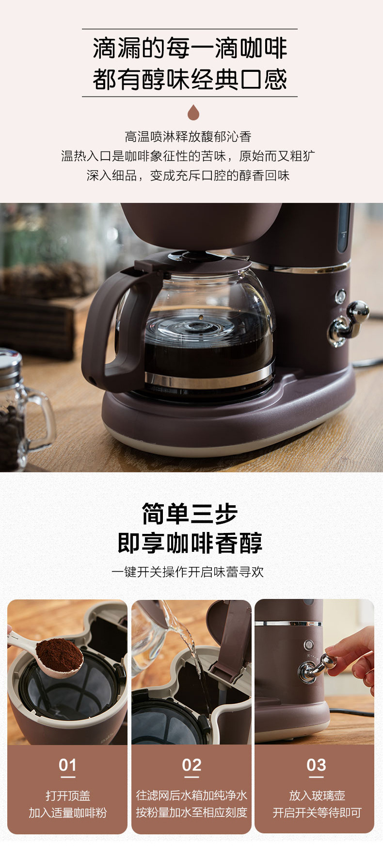 Oso oso máquina de café KFJ-A06Q1/K1 hogar americano 600ml goteo tetera