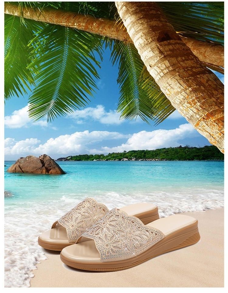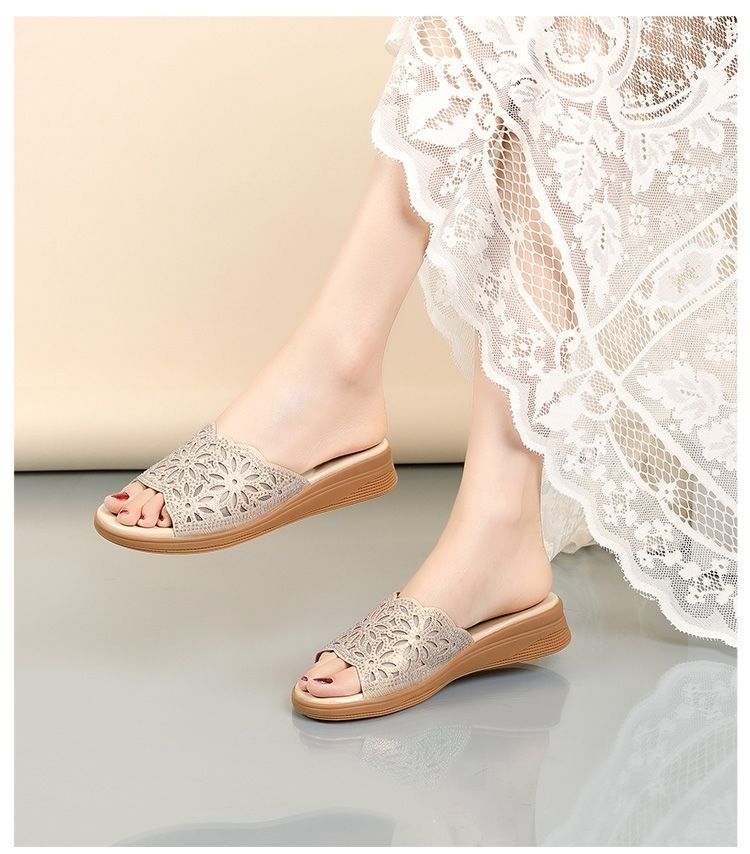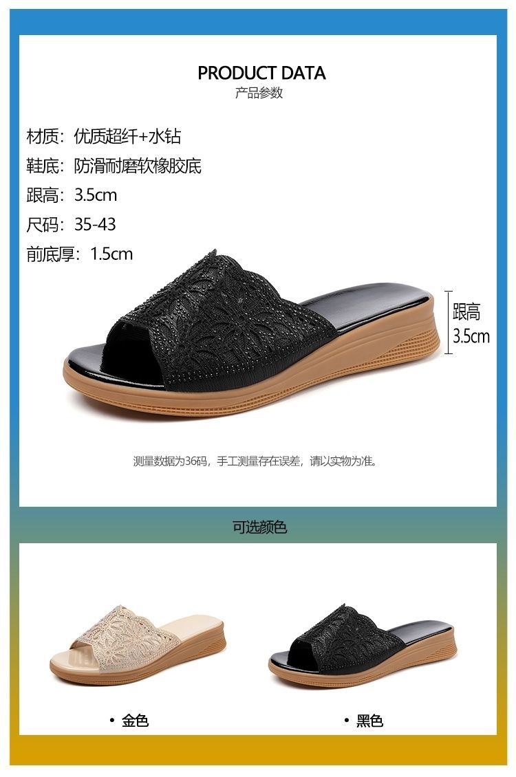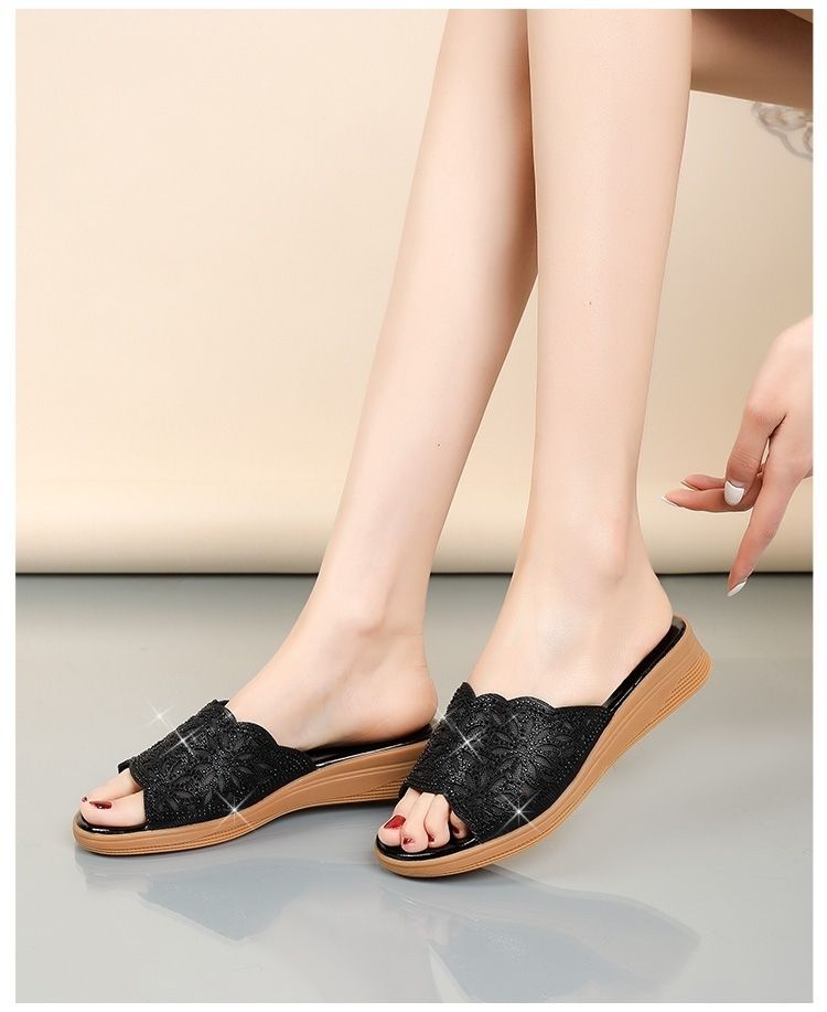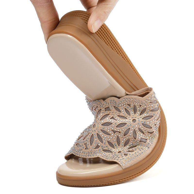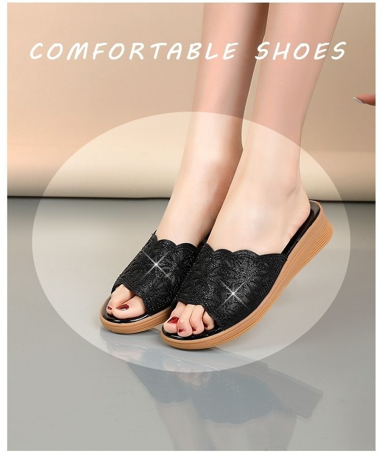 Sandalias de diamantes de imitación de agua hueca de cuero suave desgaste al aire libre de verano nueva plataforma de moda de mediana edad y ancianos zapatos casuales chanclas