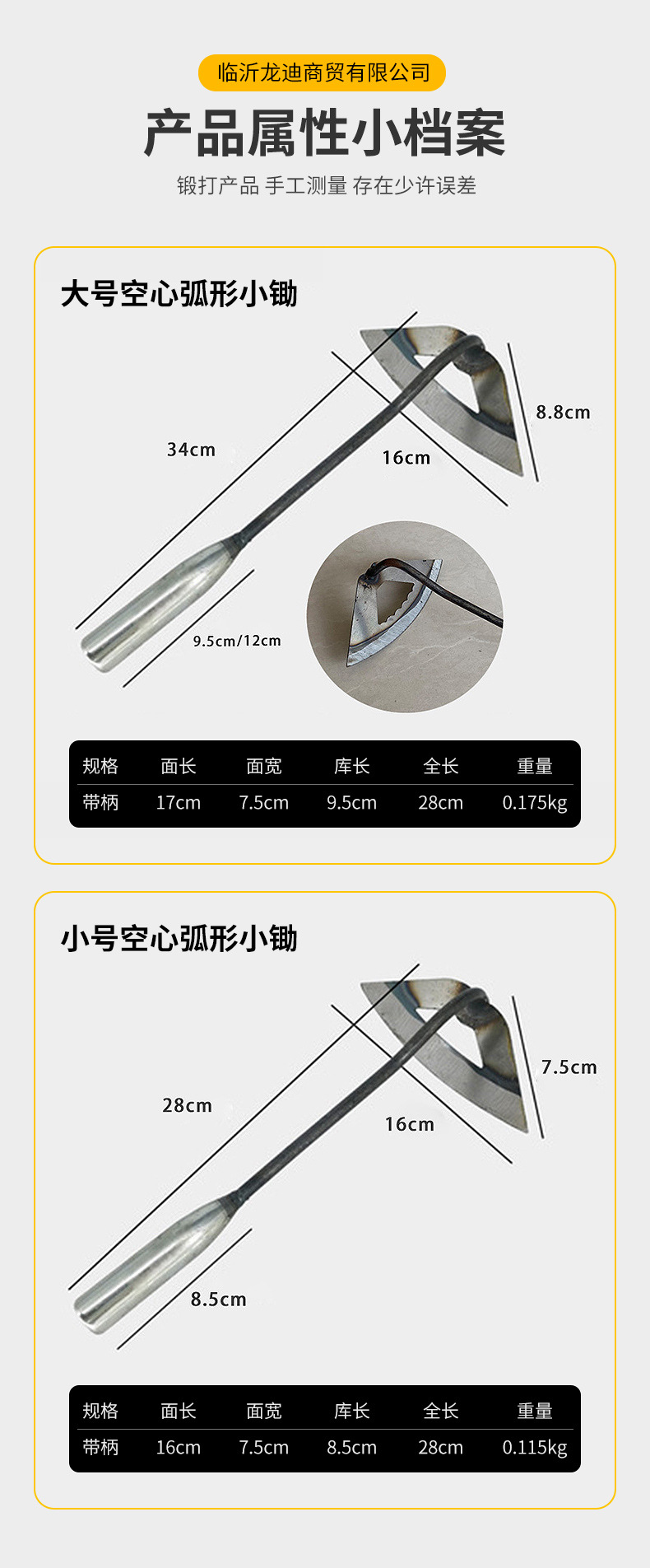 | Especificaciones | Tamaño pequeño (* 16 sobre 28) mango de hierro hueco arco azada 10 unids/mango 300 unids/pieza,Alargado (aproximadamente 34*16) mango de hierro hueco arco azada 10 unids/300 unids mango/pieza,Tamaño pequeño (aproximadamente 28*10) mango de hierro semicírculo azada 10/mango 300/pieza,Tamaño pequeño (aproximadamente 28*11,5) mango de hierro Crescent Hoe 10/mango 350/Piece,Alargado (aproximadamente 34*11,5) mango de hierro media luna azada 12 ancho 10/200/pieza,Tamaño pequeño (aproximadamente 33,5*11) trapezoidal pequeña azada cuadrada 10/200/pieza,Alargado (aproximadamente 34,5*15) Largo trapezoidal pequeña azada cuadrada 10/200/pieza,Mango recto de madera (aproximadamente 32*17) hueco arco azada 200 unids/pieza,Mango de madera (alrededor de 32 largo) semicírculo azada 10 PC/paquete 200 piezas/pieza |