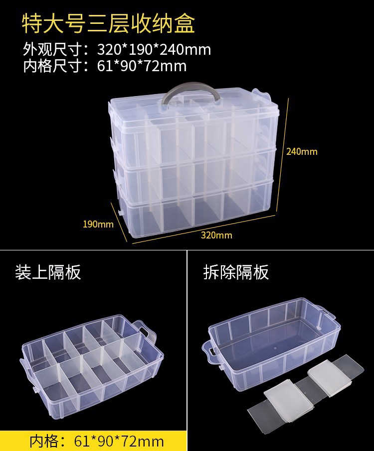| Color | Tamaño pequeño tres capas de blanco (desmontable),Grande de tres capas Blanco (desmontable),Extra grande de tres capas Blanco (desmontable),Tamaño pequeño de tres capas rojo (desmontable),Rojo grande de tres capas (desmontable),Extra grande de tres capas rojo (desmontable),Tamaño pequeño de tres capas azul (desmontable),Azul grande de tres capas (desmontable),Extra grande de tres capas Azul (desmontable),Tamaño pequeño de tres capas naranja (desmontable) elija cuidadosamente esta especificación y entregue dentro de 20 días,Naranja extra grande de tres capas (desmontable),Tamaño pequeño Blanco 36 rejillas (desmontables),Rejilla de gran tamaño 28 (desmontable),PP18 rejilla (desmontable),10 rejillas grandes (desmontables),Large 8-grid (desmontable),24 rejillas (no desmontables),Tamaño pequeño 24 rejilla (desmontable),Tamaño pequeño 15 rejillas (no desmontable) |