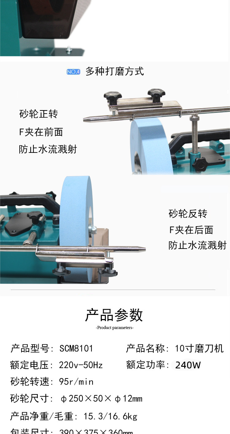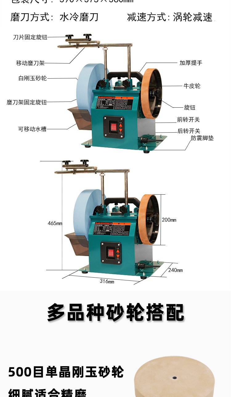 | Especificaciones | Máquina de afilar refrigerada por agua 10-inch,Máquina de afilar refrigerada por agua 10-inch con el corindón del solo cristal de 500 mallas,Juego de cuchillos de cocina,Paquete de tijeras de molienda,Paquete del cuchillo de la carpintería,Cuchillo de carne |
