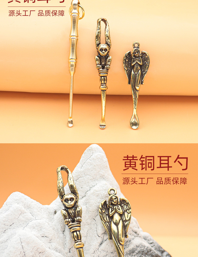 Estilo chino Ángel Dios DE LA Riqueza oído Pick llavero colgante latón nacional marea Rey Mono estatua accesorios bricolaje al por mayor