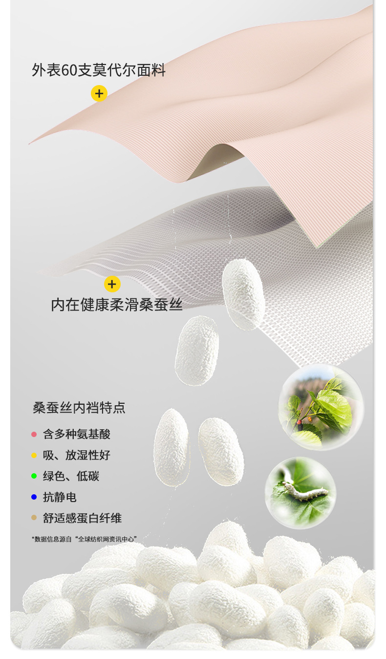 | Composición del forro de la entrepierna | Seda de morera |