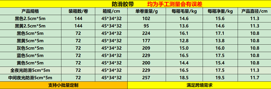 | Modelo de especificación | Negro mate; ancho 2.5cm * largo 5m,Negro mate; ancho 5cm * largo 5m,Gris mate; ancho 5cm * largo 5m,Espuma transparente; ancho 5cm * largo 5m,Azul mate; ancho 5cm * largo 5m,Amarillo esmerilado; ancho 5cm * largo 5m,Frostado negro amarillo; ancho 2.5cm * largo 5m,Amarillo negro mate; ancho 5cm * largo 5m,Luminoso mate; ancho 5cm * largo 5m,Luminoso completo mate; ancho 5cm * largo 5m,Caucho plástico grano de piedra triturada negro; ancho 2.5cm * largo 5m,Caucho plástico grano de piedra triturada negro; ancho 5cm * largo 5m,Caucho plástico grano de piedra triturada negro; ancho 10cm * largo 5m,Patrón de piedra triturada de caucho transparente; ancho 2.5cm * largo 5m,Patrón de piedra triturada de caucho transparente; ancho 5cm * largo 5m,Patrón de piedra triturada de caucho transparente; ancho 10cm * largo 5m,Patrón de diamante de caucho transparente; ancho 2.5cm * largo 5m,Patrón de diamante de caucho transparente; ancho 5cm * largo 5m,Patrón de diamante de caucho transparente; ancho 10cm * largo 5m |