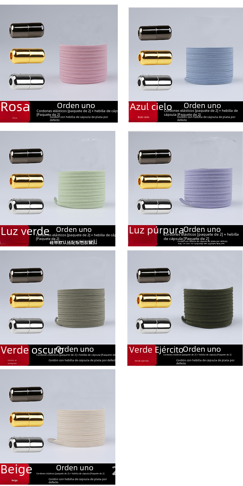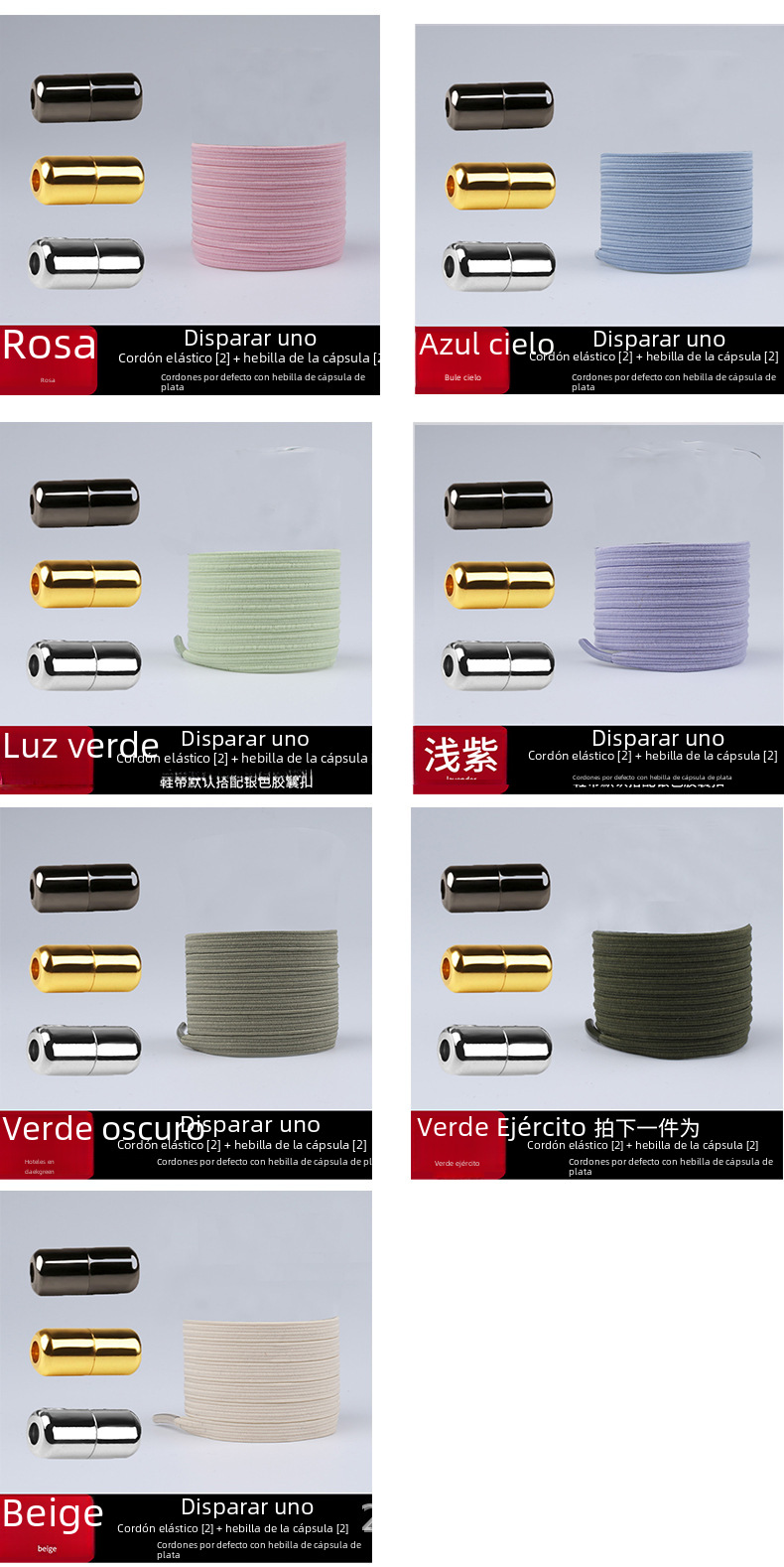 | Color | Blanco,Rosa,Naranja,Rojo,Púrpura,Gris,Verde,Marrón,Negro,Puntos negros sobre fondo blanco,Fondo negro con puntos blancos,Puntos amarillos sobre fondo negro,Azul,Amarillo fluorescente,Verde fluorescente,Rosa Roja,Verde Ejército,Beige,Luz verde,Luz púrpura,Verde oscuro,Azul cielo,Gris oscuro |