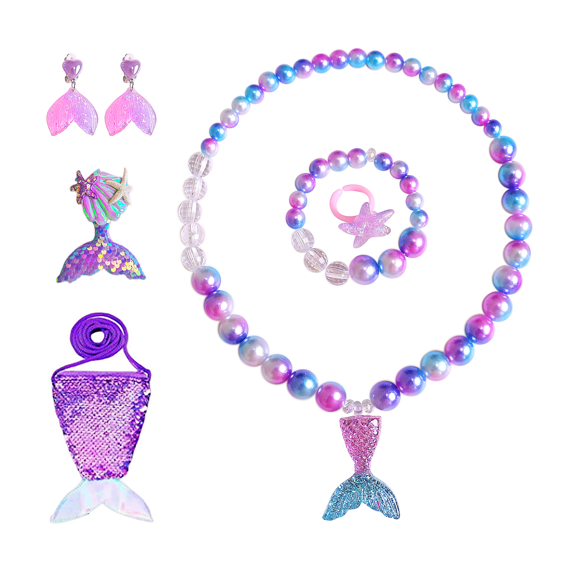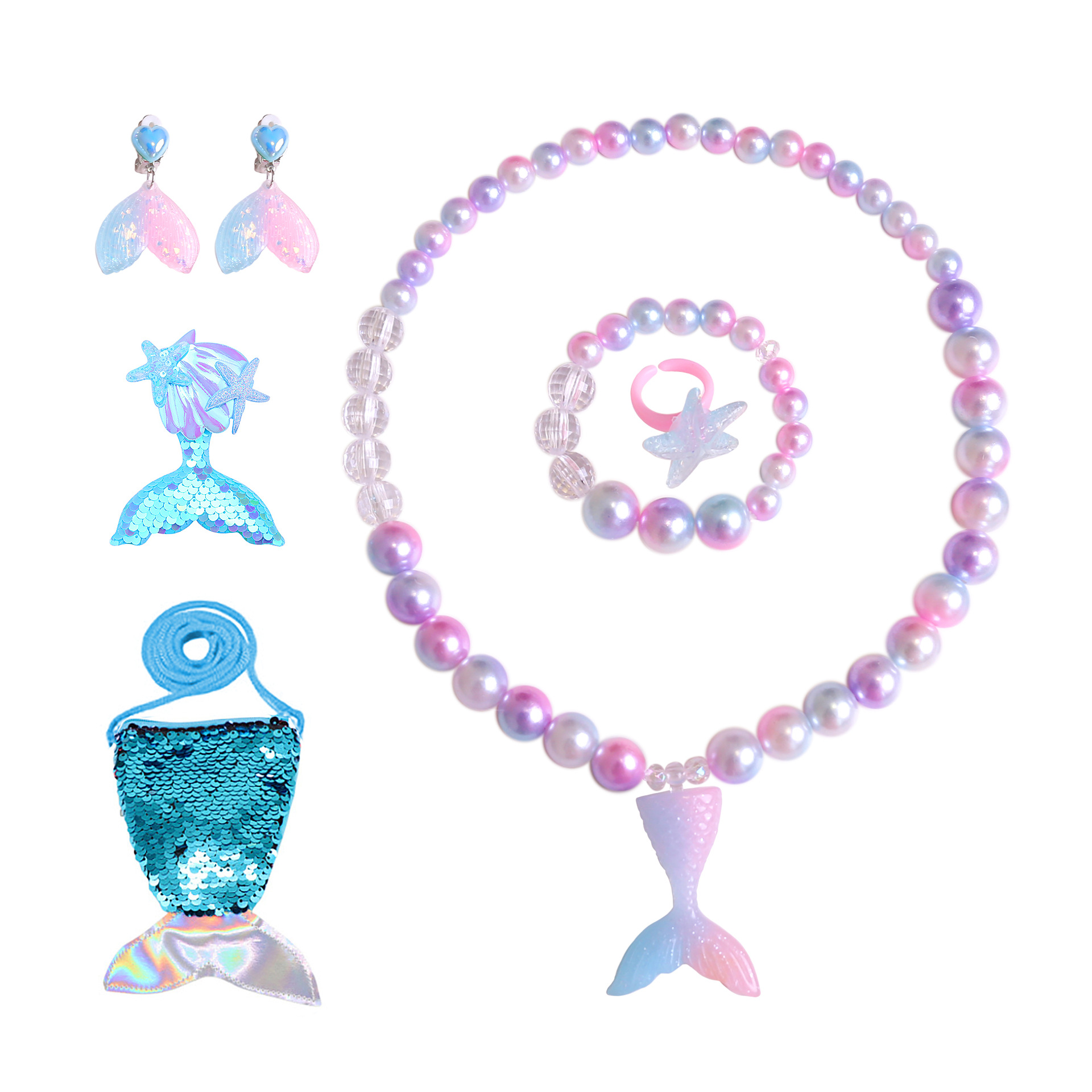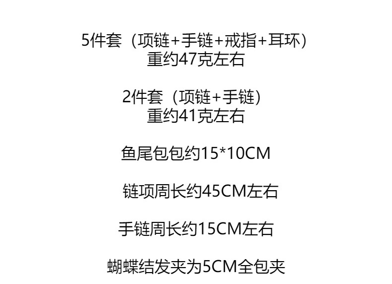 | Colores | A11 (juego de cinco piezas de cola de pez),A12 (juego de cinco piezas de cola de pez),A13 (juego de cinco piezas de cola de pez),A102 (juego de dos piezas de cola de pez),A103 (juego de dos piezas de cola de pez),A104 (juego de dos piezas de cola de pez),Combinación de joyas de sirena,SA48-Juego de horquillas de cinta azul violeta,SA55-Juego de horquillas de cinta rosa,SA40-Juego de siete piezas de cola de pez púrpura,SA41-Conjunto de siete piezas de cola de pez azul,SA42-Juego de siete piezas de cola de pez rosa,SA43-Juego de cola de pez con lazo azul,SA44-Juego de cola de pez con lazo morado,SA45-Juego de cola de pez con lazo rosa,SA46-Juego amarillo de cola de pez de color,SA47-Conjunto de polvo de cola de pez de color,SA50-Juego de cinco piezas de gota de agua púrpura,SA51-Juego de cinco gotas de agua azul,SA52-Juego de cinco piezas de gotas de agua rosa,SA79-Juego de cinco piezas de concha púrpura,SA81-Bolsa de sirena azul de siete piezas,SA82-Bolsa de sirena púrpura de siete piezas,SA86-Juego de cuatro piezas de sirena azul,SA87-Juego de cuatro piezas de sirena rosa,SA88-Juego de cuatro piezas de sirena púrpura,SA91-Conjunto de dos piezas de concha azul colorido,SA92-Conjunto de siete piezas de concha azul colorido,SA93-Conjunto de dos piezas de concha rosa colorida,SA94-Conjunto de siete piezas de concha rosa colorida,SA95-Conjunto de siete piezas de concha de cola de pez rosa,SA97-Conjunto de dos piezas de concha colorida,SA98-Conjunto de siete piezas de concha colorida,SA120 juego de siete piezas de sirena púrpura,Juego de cinco piezas de concha rosa SA121,Juego de cinco piezas de concha azul SA122,SA126 Juego de seis piezas de sirena púrpura |