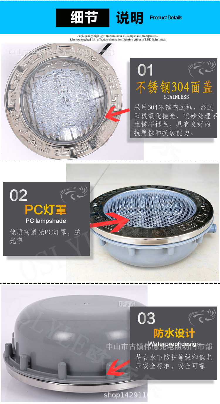 | Alcance del uso | Piscina, fuente, piscina y otras luces subacuáticas, iluminación de representación de luz de paisaje |
