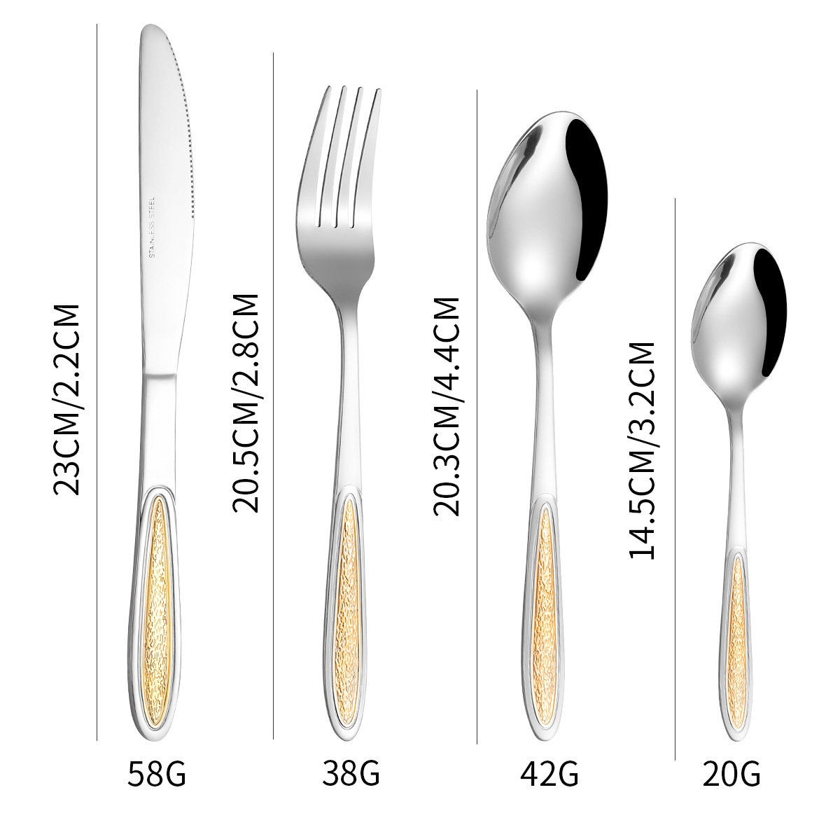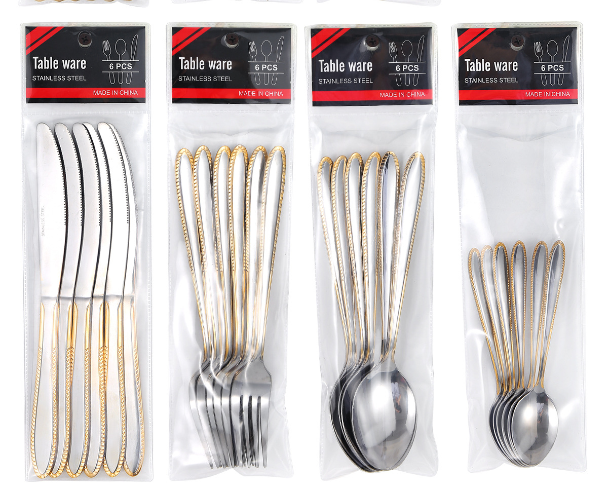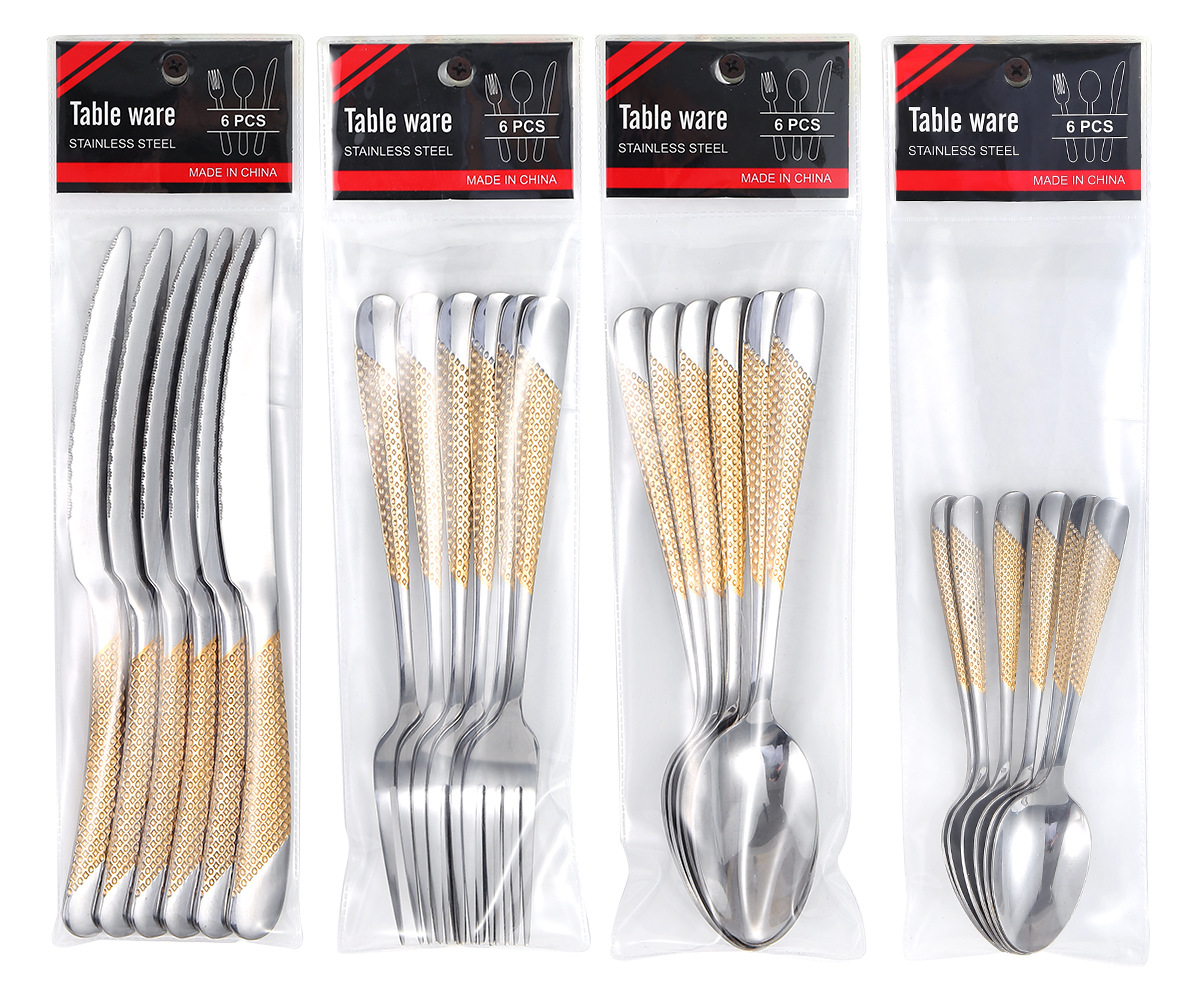 | Color | Cuchillo de comedor 6 piezas [Star Diamond],Tenedor de comedor 6 piezas [Star Diamond],Cuchara 6 piezas [Star Diamond],Cuchara de té 6 piezas [Star Diamond],Cuchillo de mesa 6 piezas [Corona],Tenedor 6PCs [Corona],Cuchara 6PCs [Corona],Cuchara de té 6 piezas [Corona],Cuchillo de comedor 6PCs [patrón de piedra],Tenedor 6PCs [patrón de piedra],Cuchara 6PCs [patrón de piedra],Cuchara de té 6PCs [patrón de piedra],Cuchillo de comedor 6PCs [punto de borde],Tenedor 6PCs [punto de borde],Cuchara 6PCs [punto de borde],Cuchara de té 6PCs [punto de borde] |