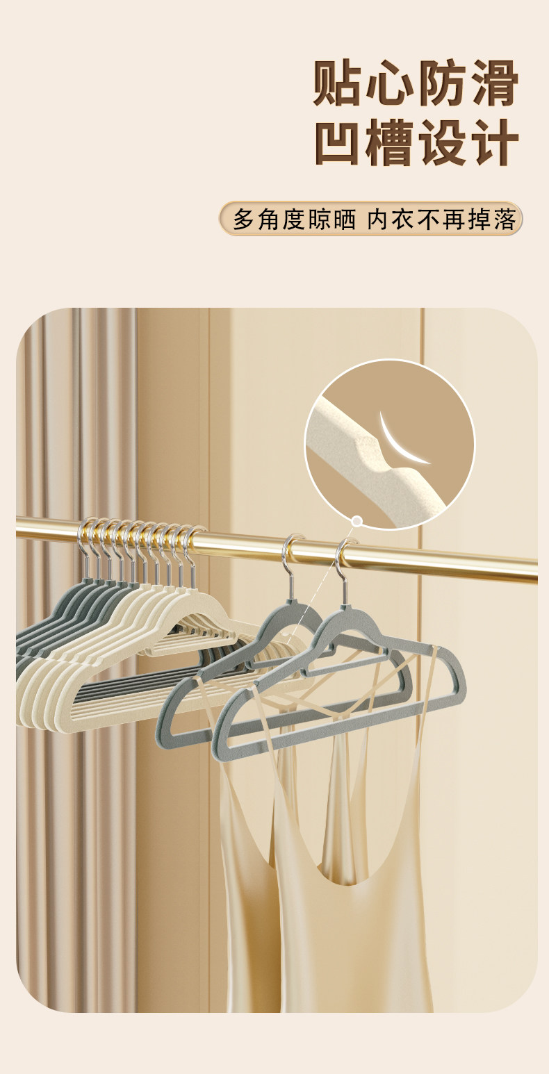Flocado antideslizante percha de ropa de plástico percha de ropa sin costuras de terciopelo 45CM Almacenamiento y acabado tienda de ropa percha fábrica al por mayor