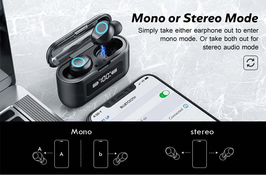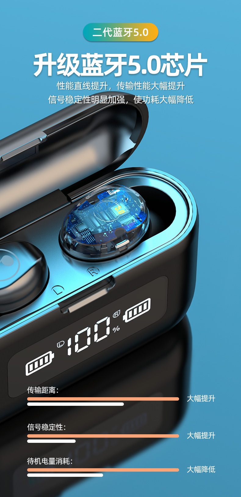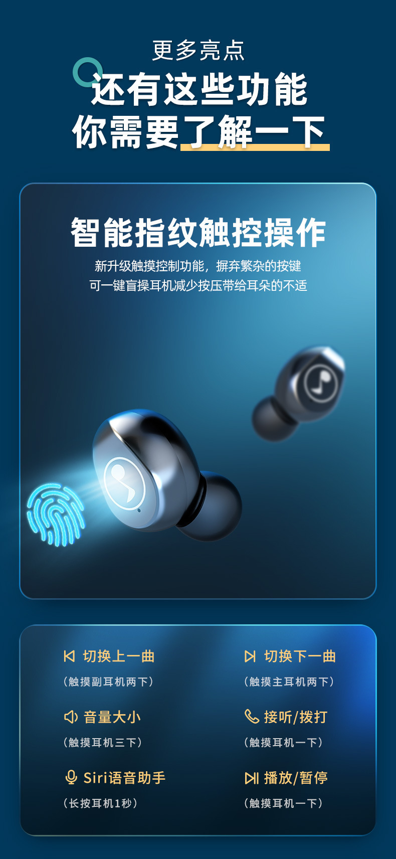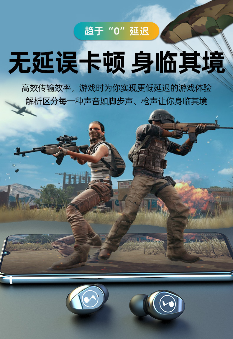 2*蓝牙耳机,1*电池仓,1*USB线,1*说明书,4*耳塞